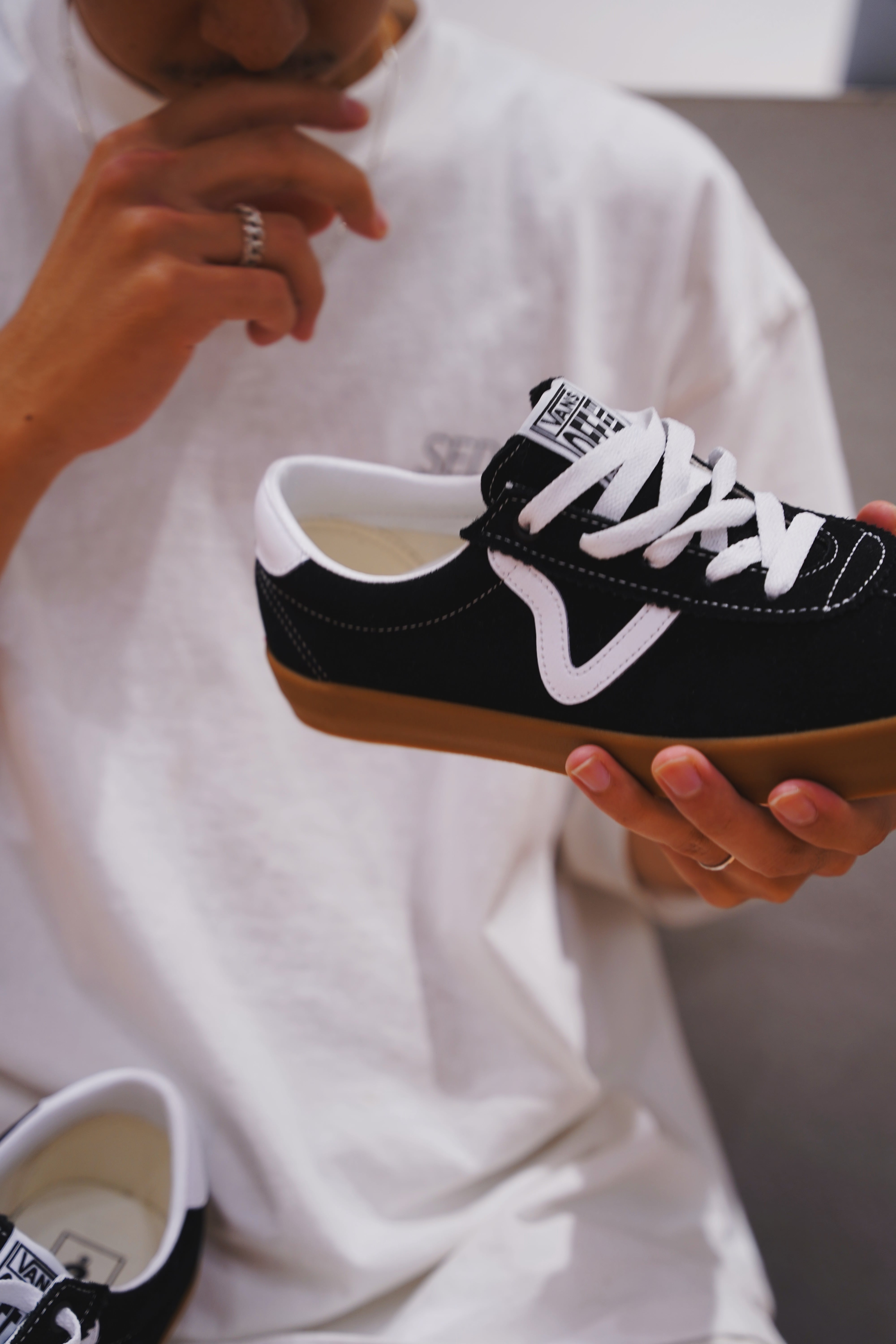 目を引く "V" サイドストライプから昔ながらのシュータンロゴラベルまで、このSport Lowはヴィンテージな雰囲気を感じさせる仕上がりになっている。