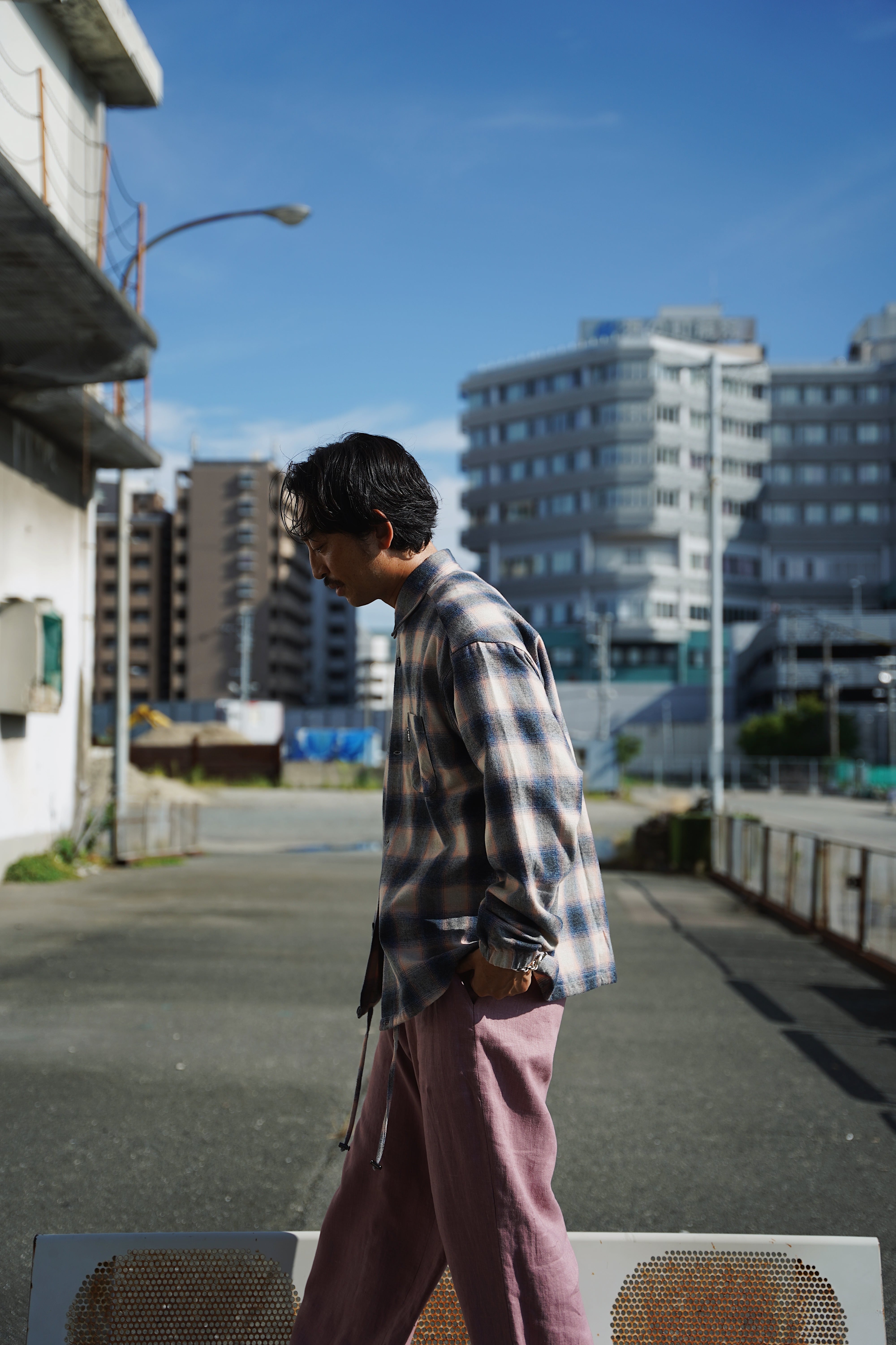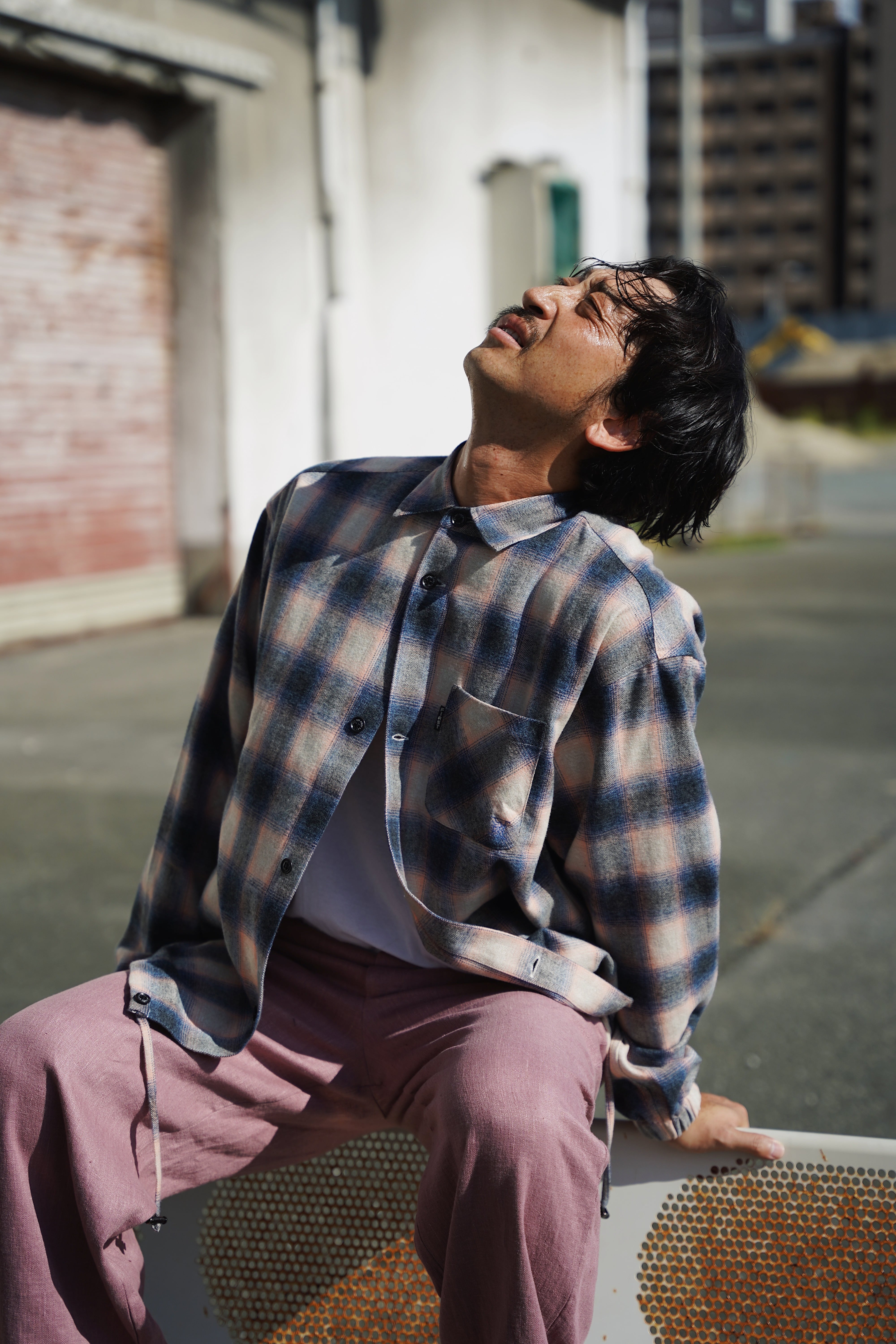OMBRE CHECK SHIRTS JACKET PINK