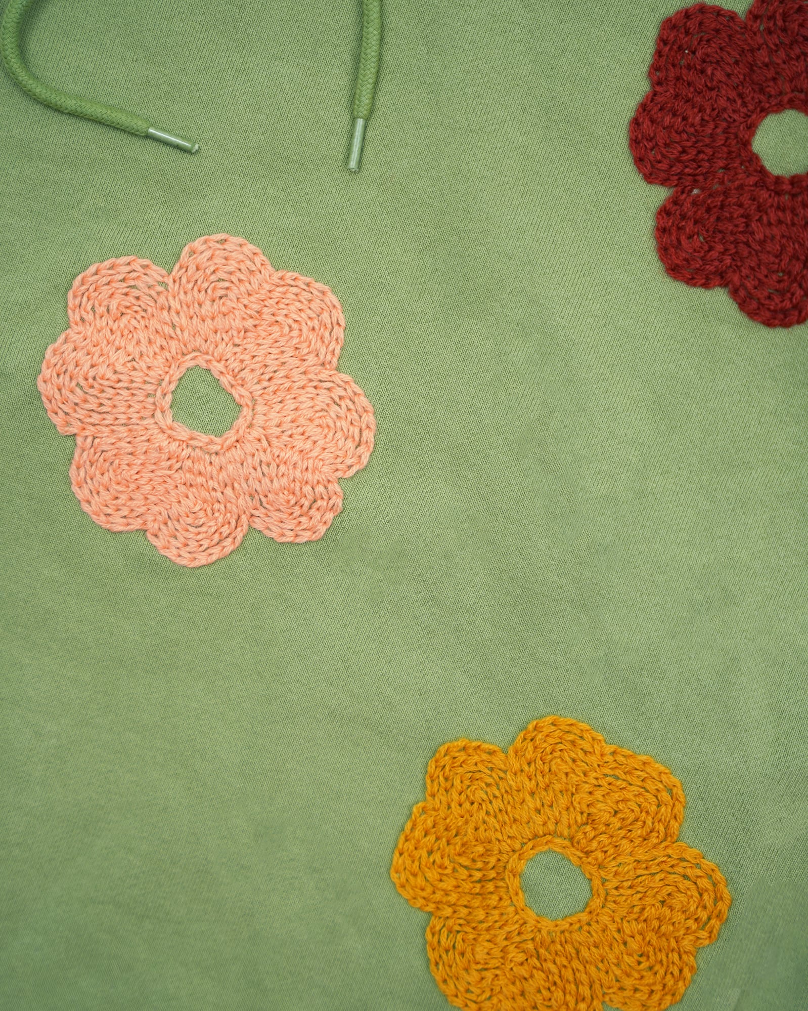 CC"FULL BLOOM" HAND EMBROIDERY HOODIE GREEN