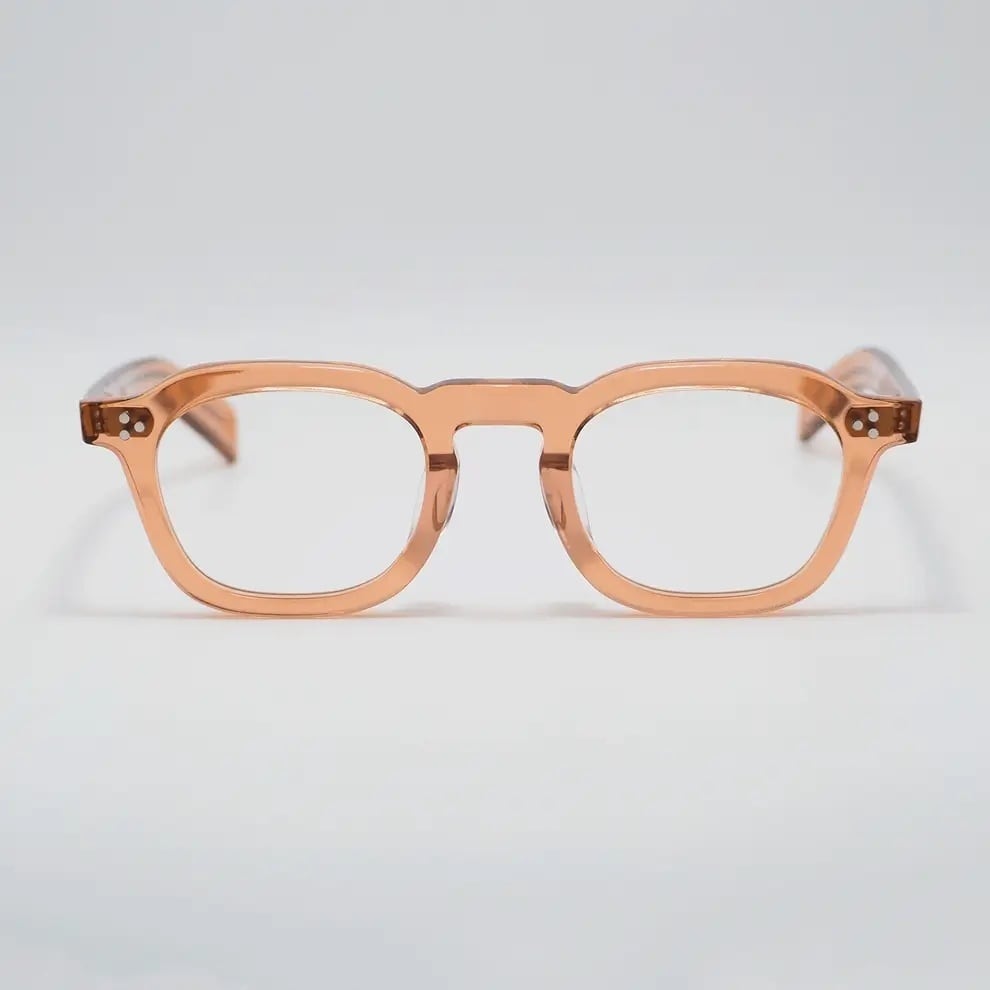 肉厚なフロントと3点のリアルリベットやテンプルデザインが特徴。