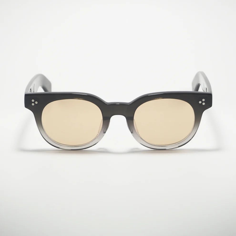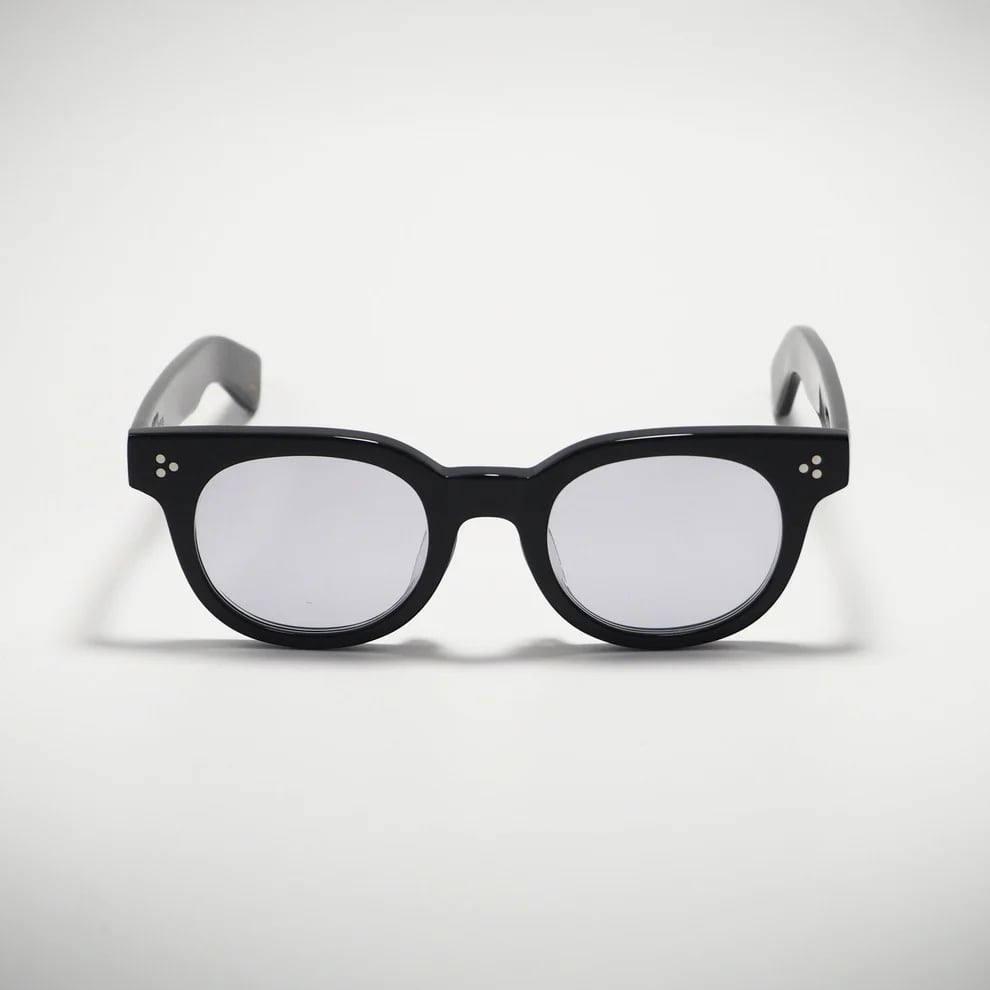 サイドに施した3点のリベットと太めのテンプルが特徴的な一本