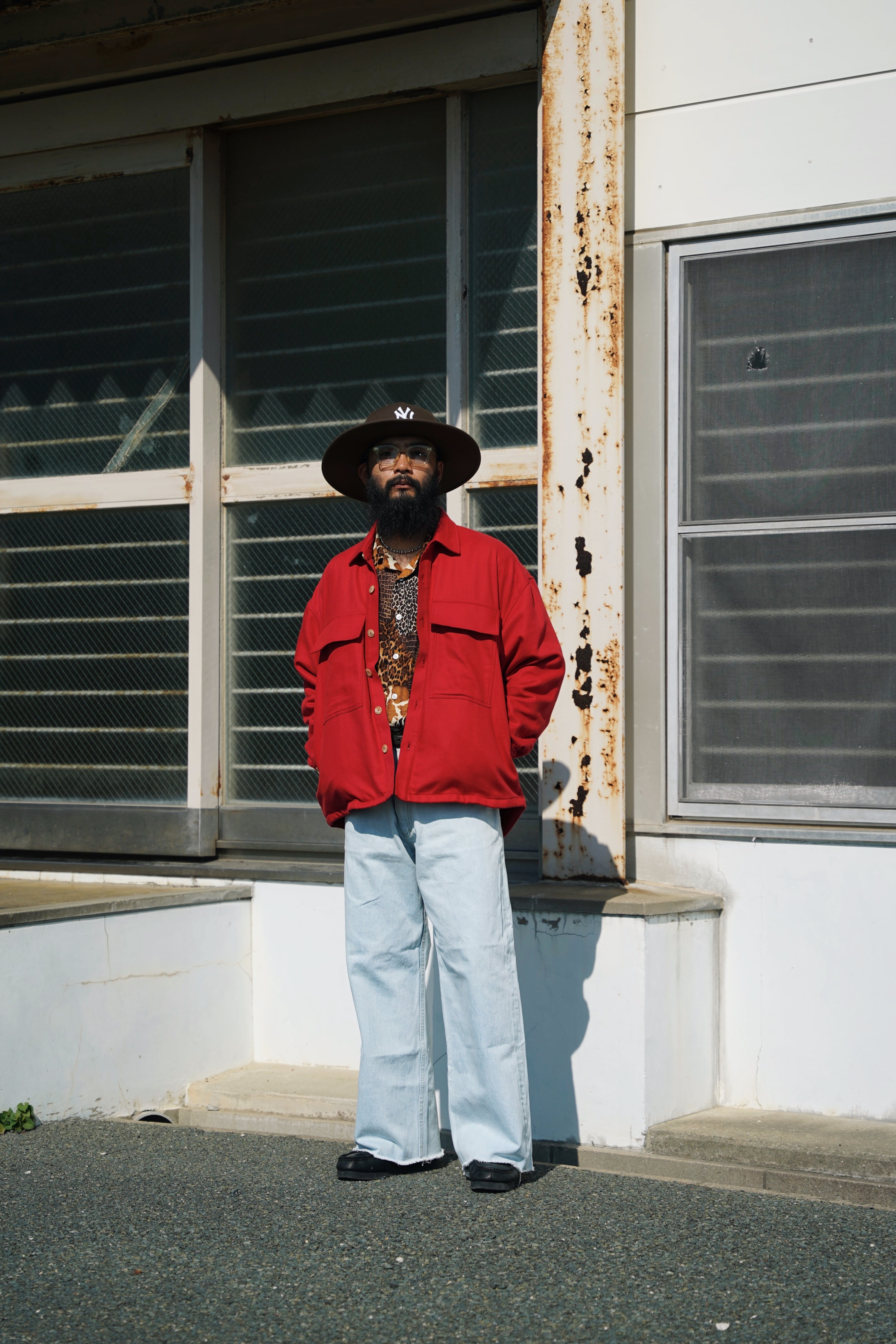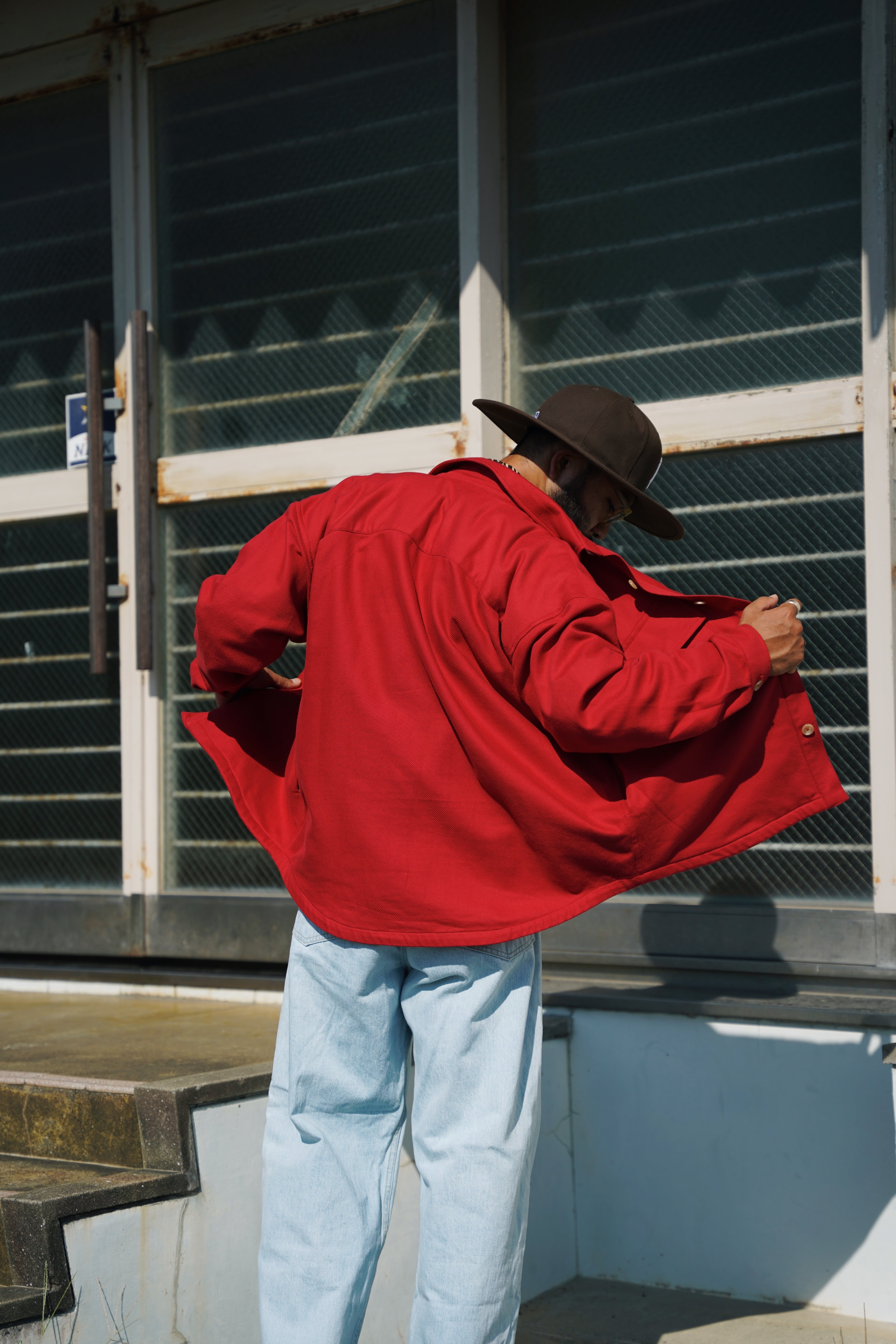 背面をラウンドカット仕様にし、裏地を付けずに肉厚すぎない生地を採用することでシャツとしての雰囲気を残しながら、シルエットを身幅広め着丈短めに設定し、サイドにスリットポケットあしらうことでジャケットとしてのディティールも兼ね備えている。