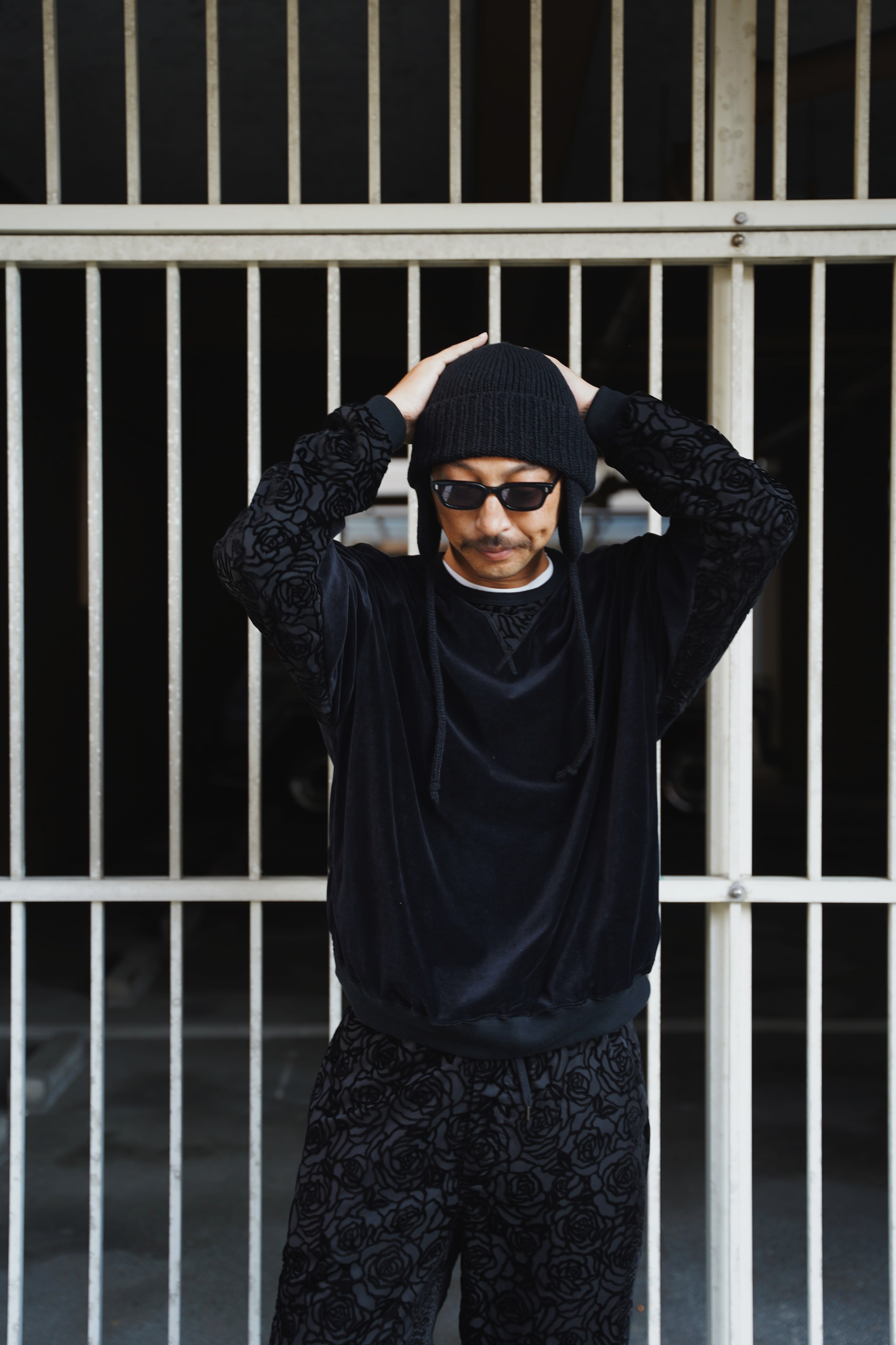 肉厚なコットンベロアのプルオーバーにオリジナルベルベットをパーツで使用。