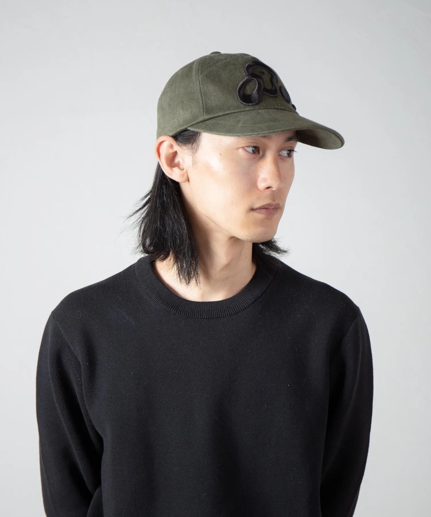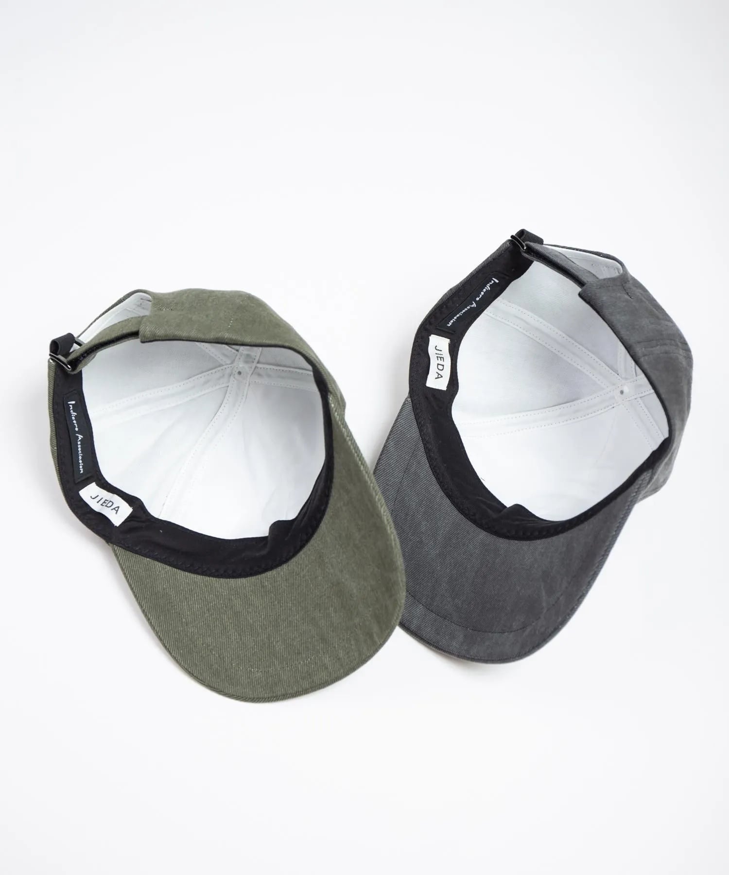 【JieDa】とのコラボレーション企画のロゴキャップ。生地はJieDaオリジナル生地で顔料染めされたフェード感がある生地です。コットン生地でシーズン問わず着用することが可能。ロゴは過去のアーカイブのロゴを採用し、バックパネルにはJieDaのレザーパッチを施したデザイン。後方はサイズ調整可能なベルクロ仕様、左ループ部分にはゴムテープを使用することでフィット感をより高めるようになっている。