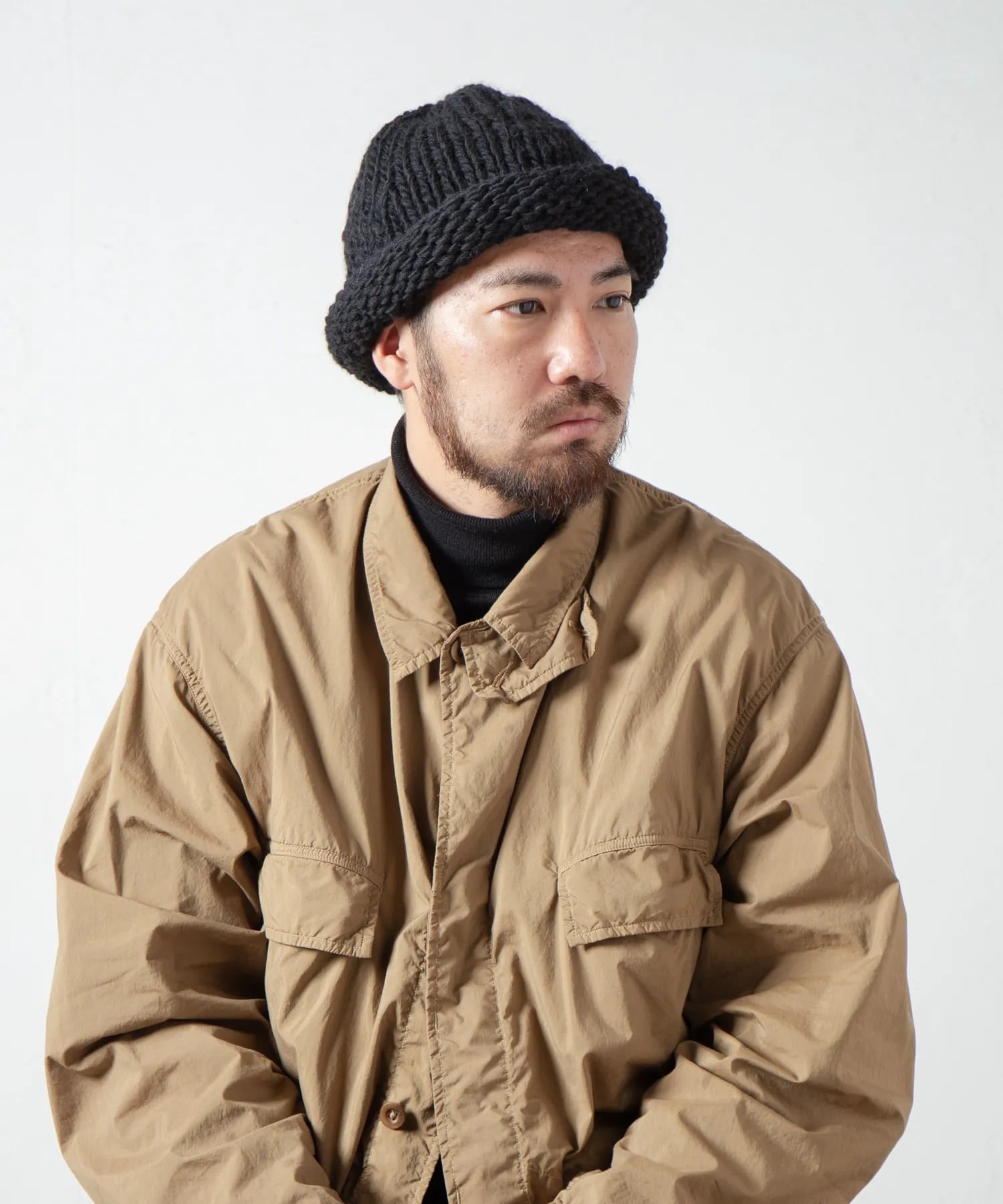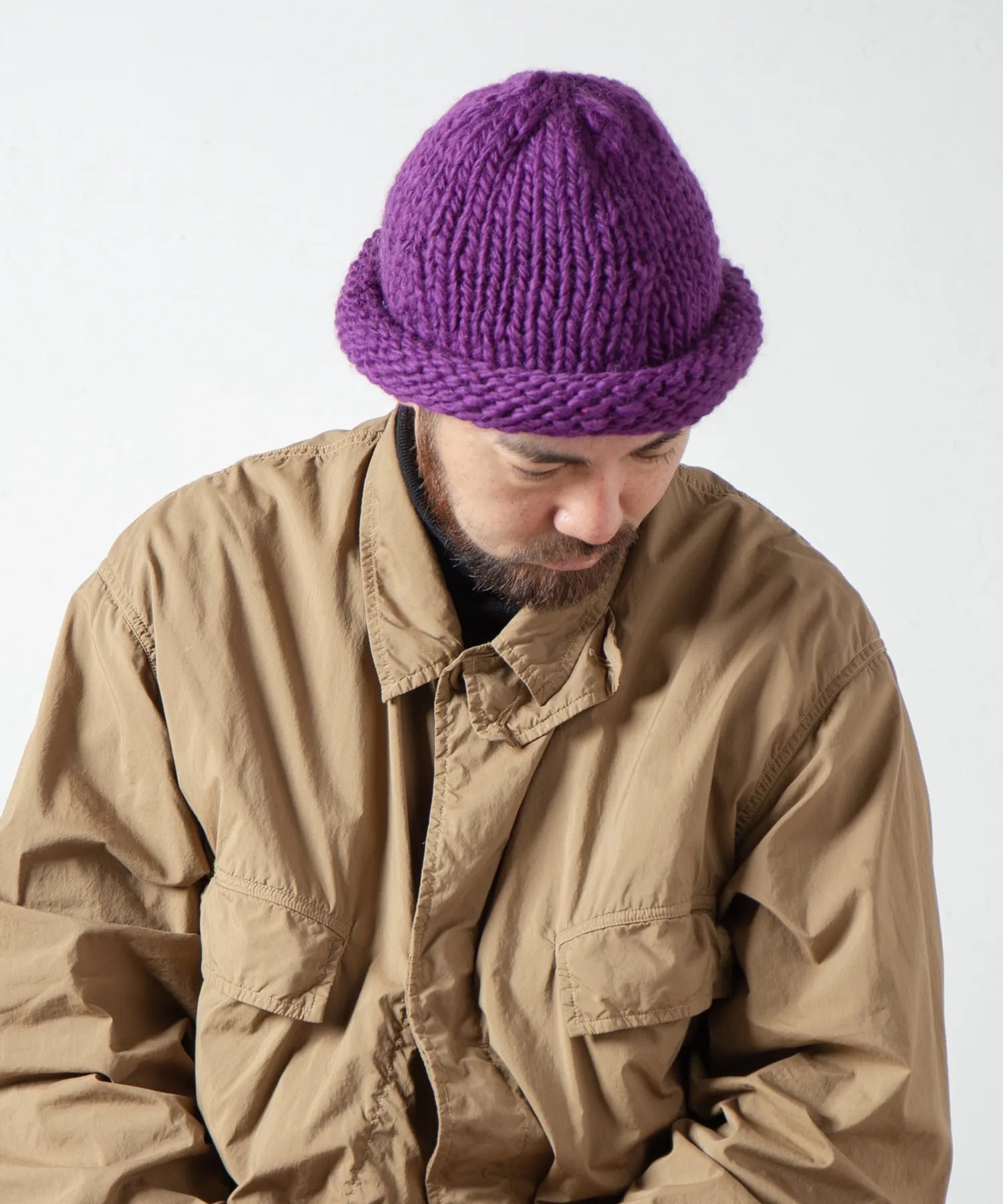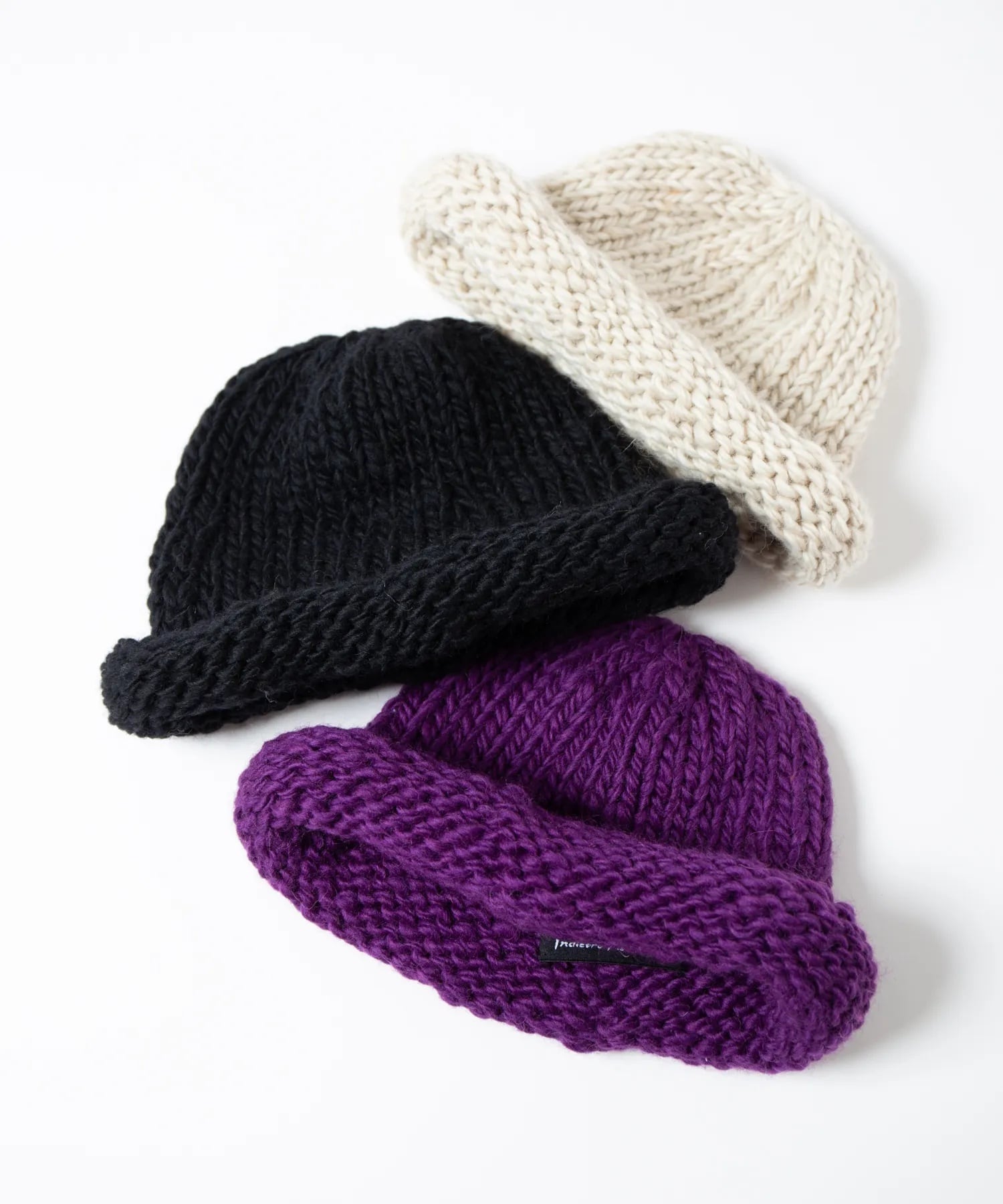 ブリティッシュウールのスラブヤーンで編み⽴てたハンドメイドのニットキャップです。