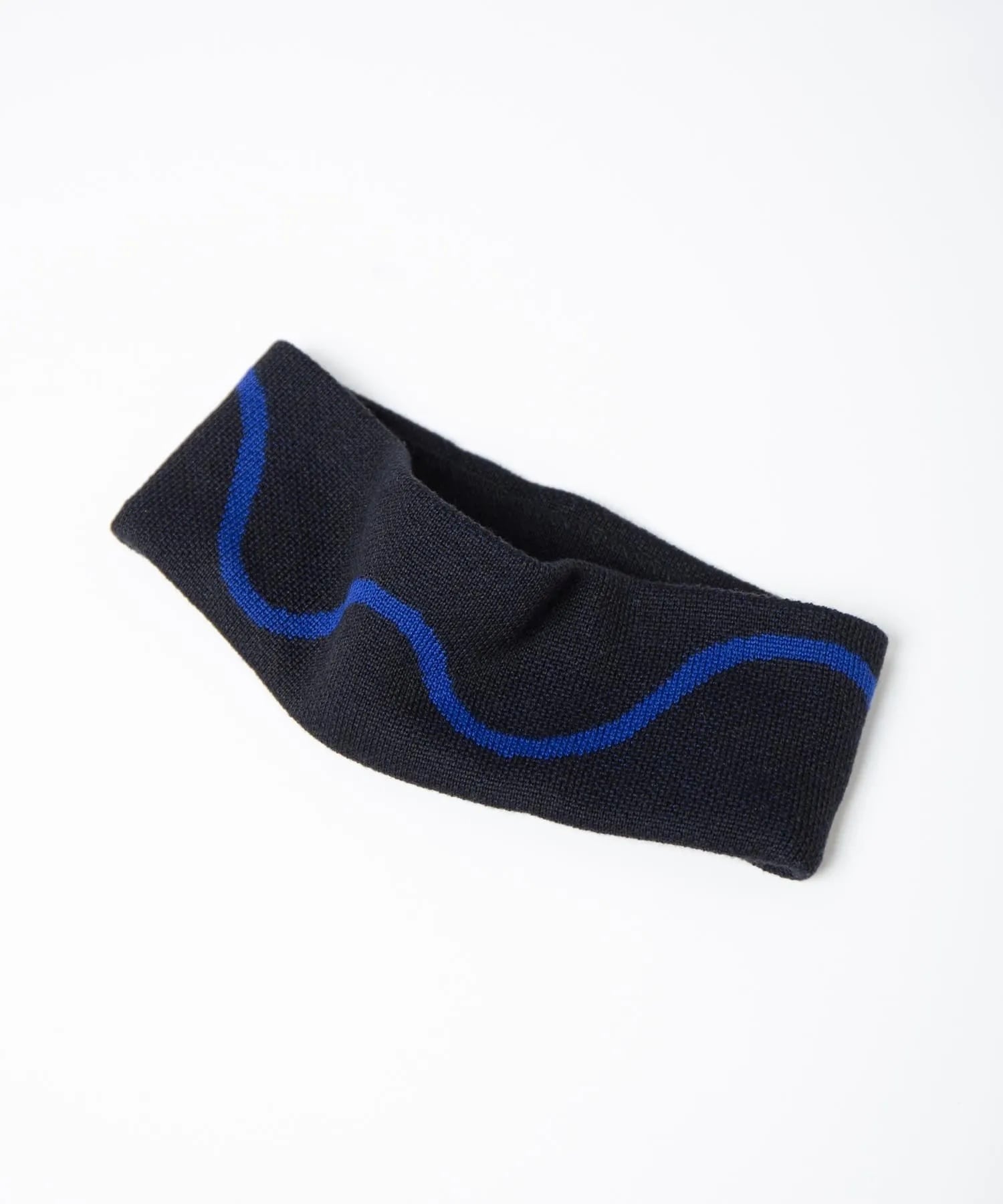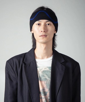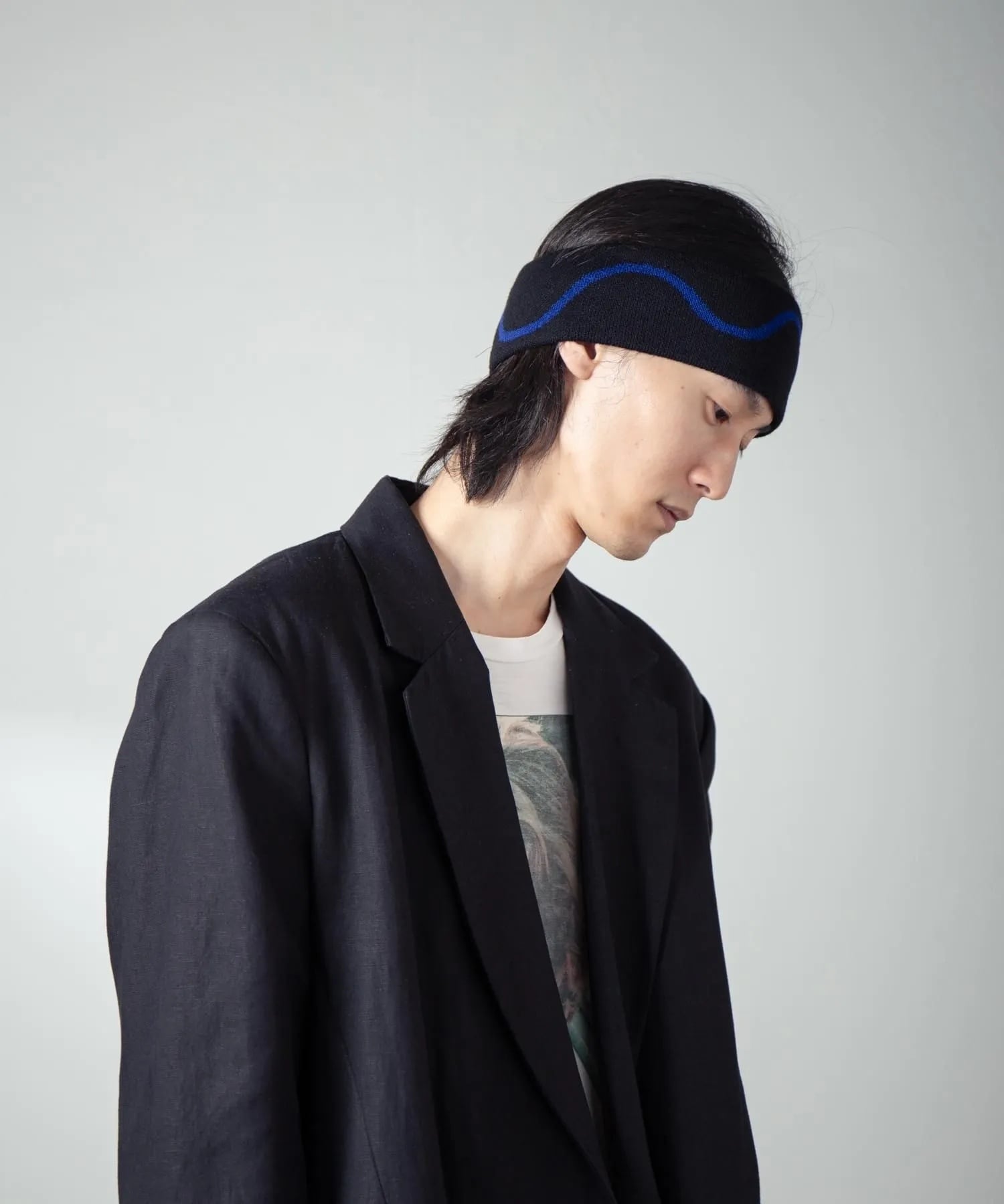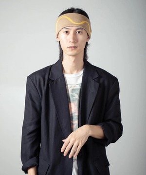 波をイメージしたラインが施されたヘアバンド。ブラックは『水』、ベージュは『砂漠』と2面性を表現。ジャガード編みの12ゲージのハイゲージで編み立てることで、上品に仕上げている。ビスコースメインのアクリル、ウール、シルク混の糸を使用しており、なめらかなとろみがある質感がさらに上品さをプラス。大人のヘアバンドといって間違いない。
