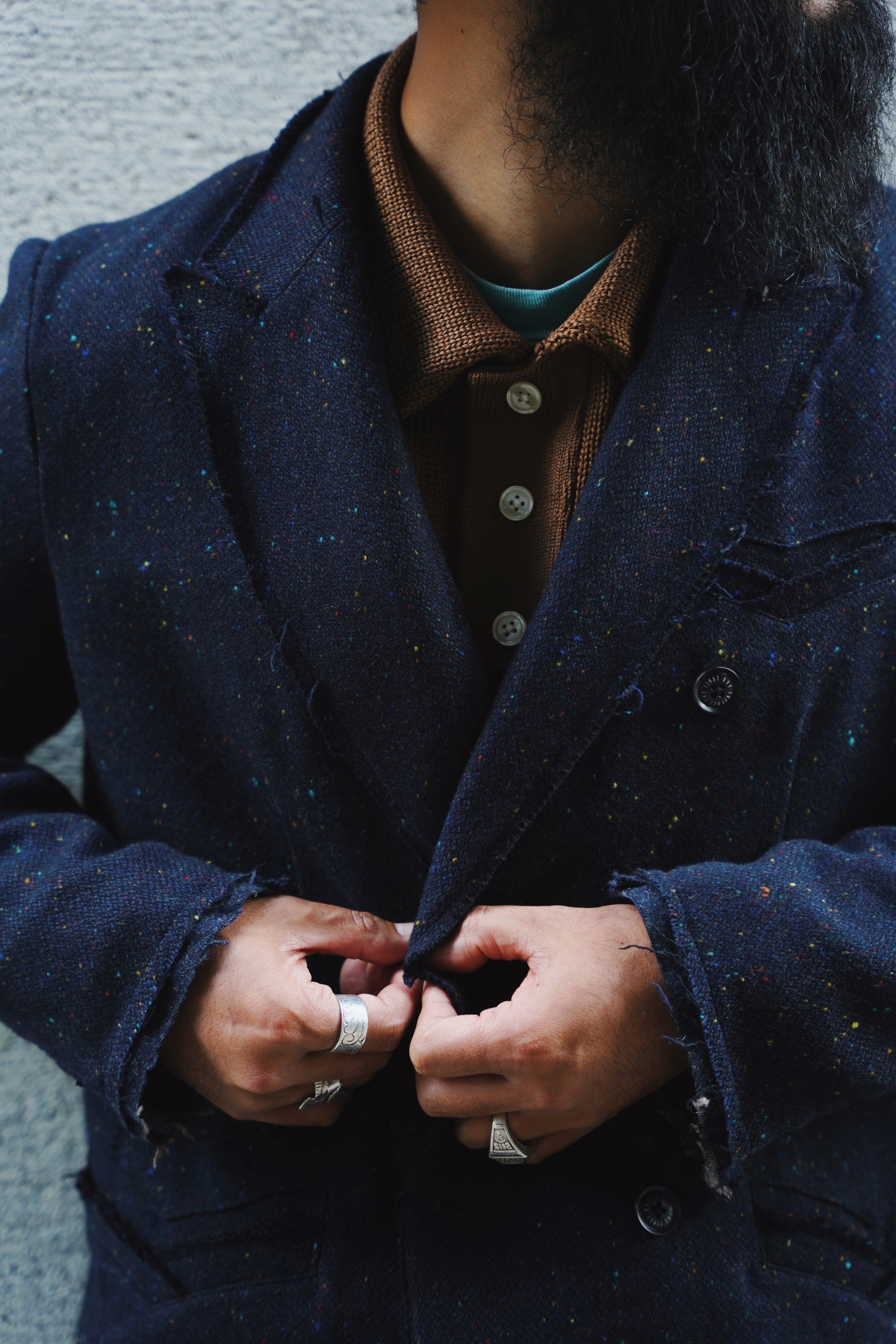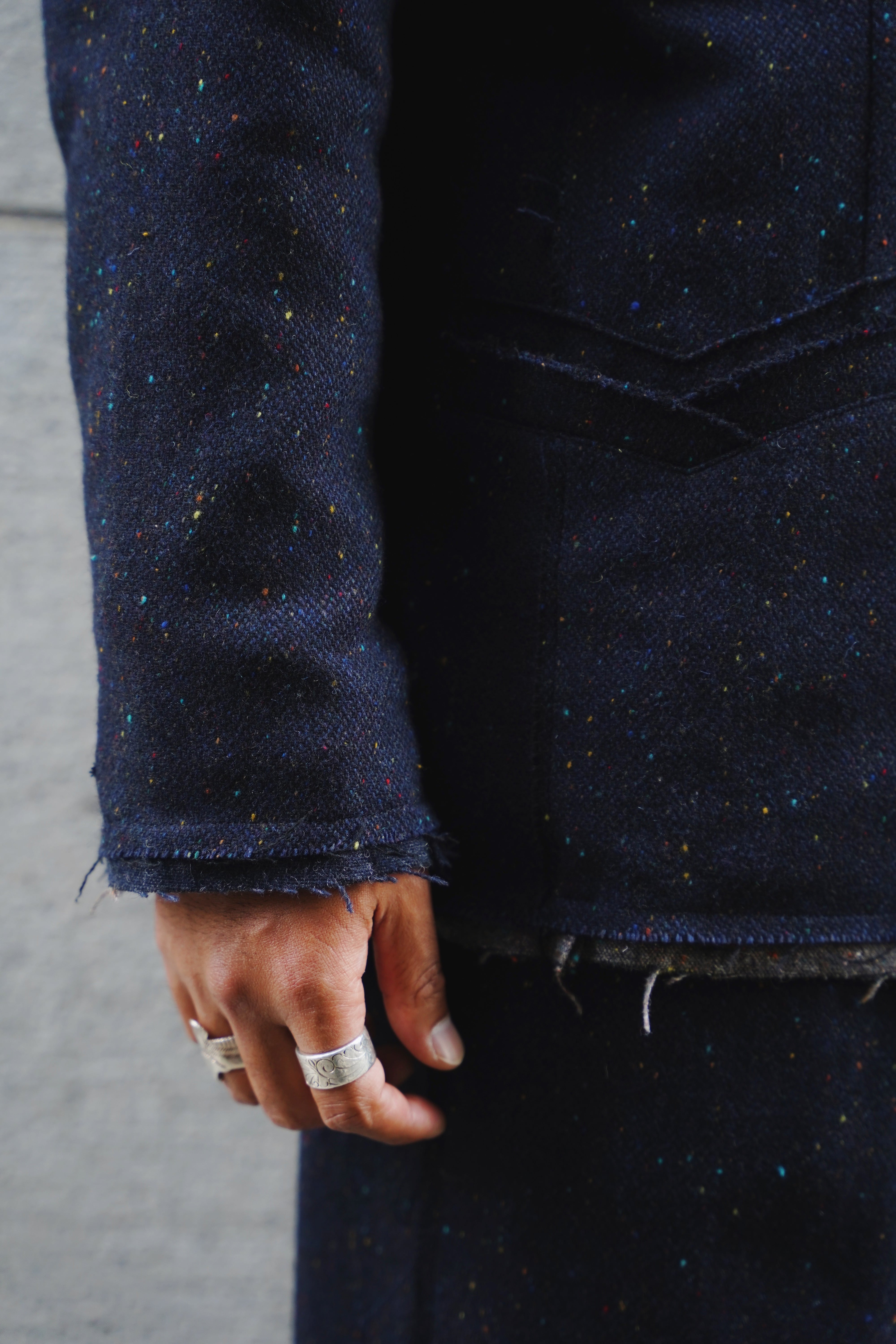 カラーネップを含んだ、柔らかく落ち感のあるツイードジャケット。