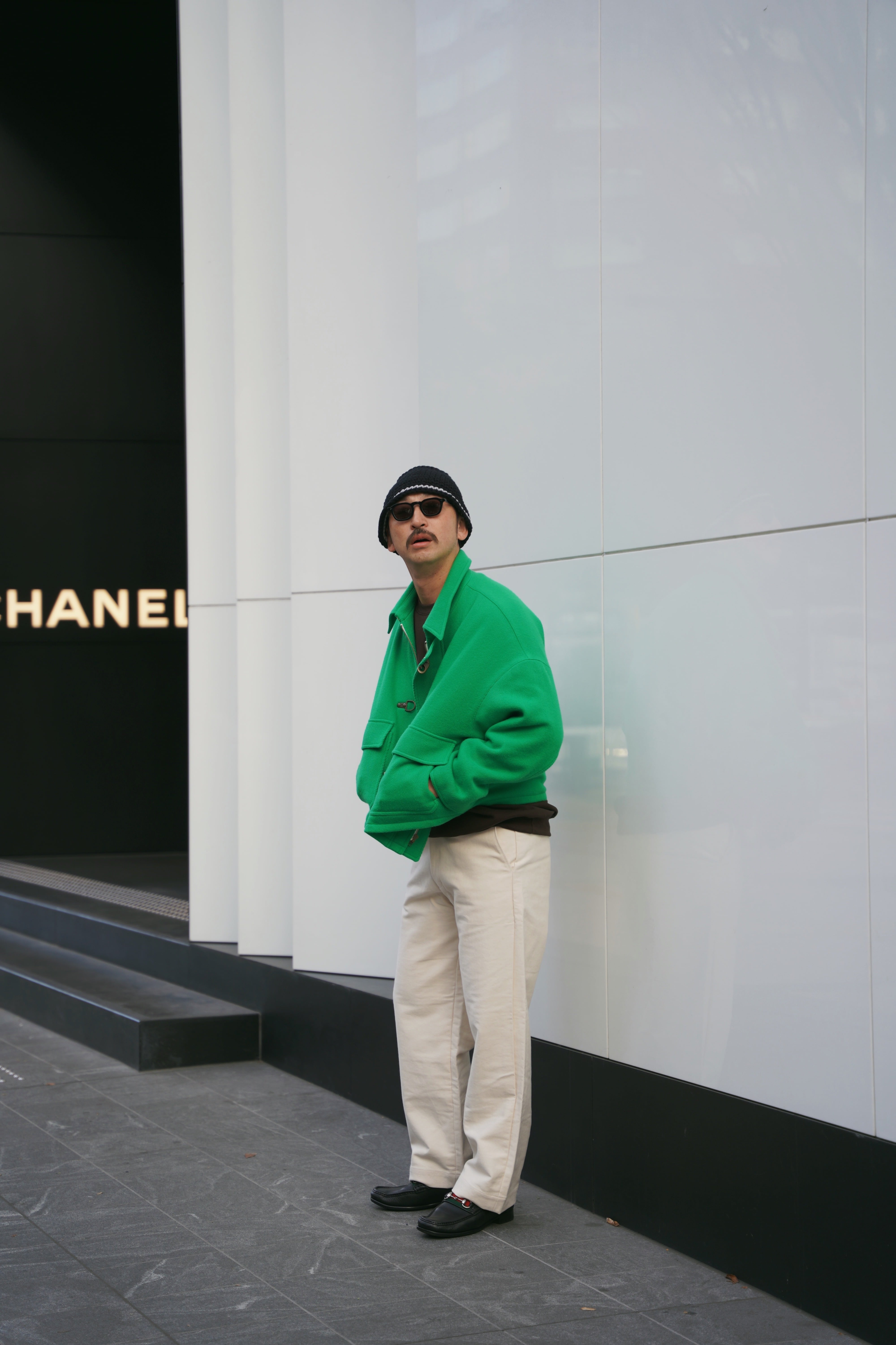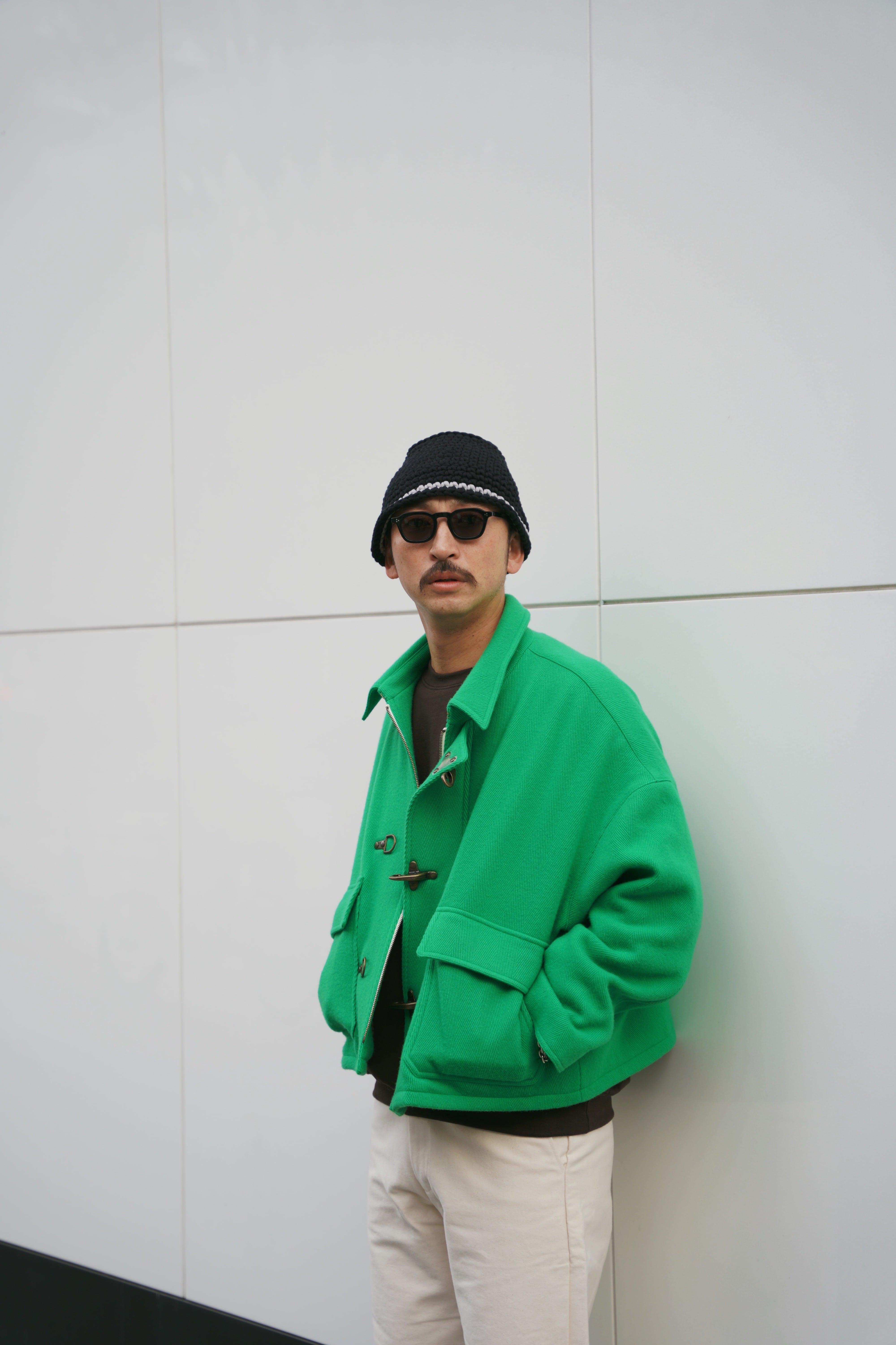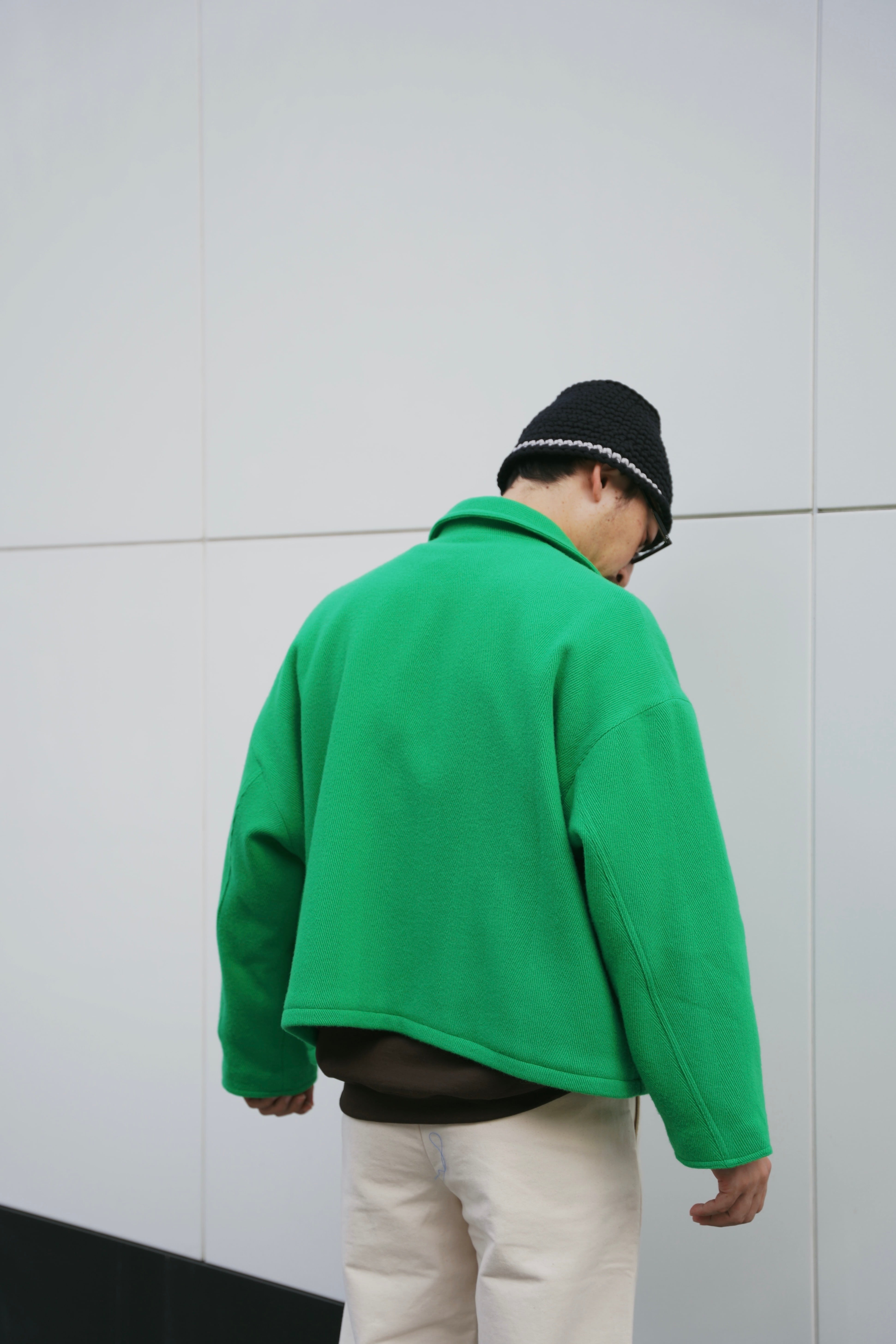大きくとった身幅やアームもショートレングスでバランスを取ることで収まりの良く、インナーにボリュームあるニット等合わせても綺麗なシルエットで着用が出来るよう設計。