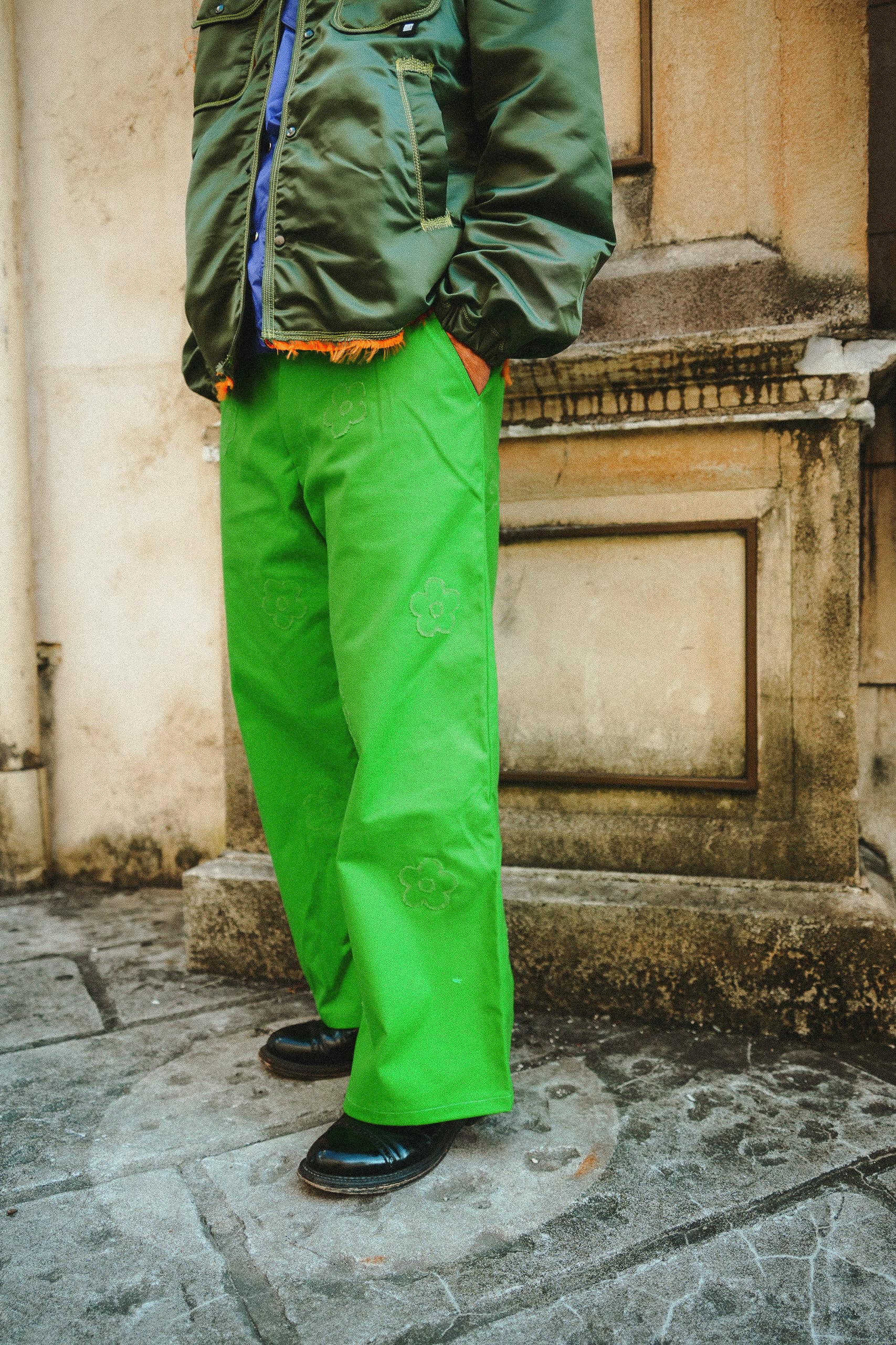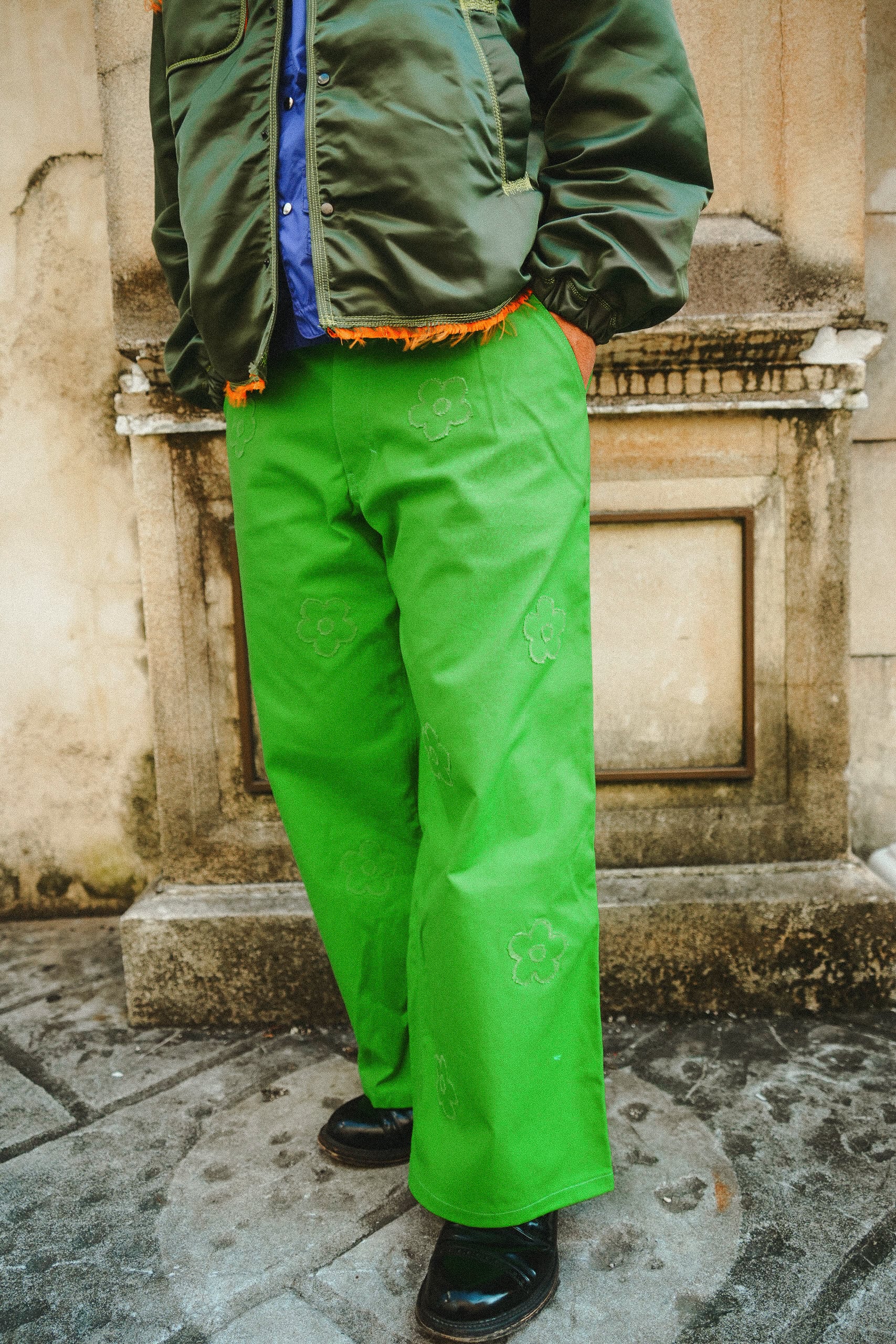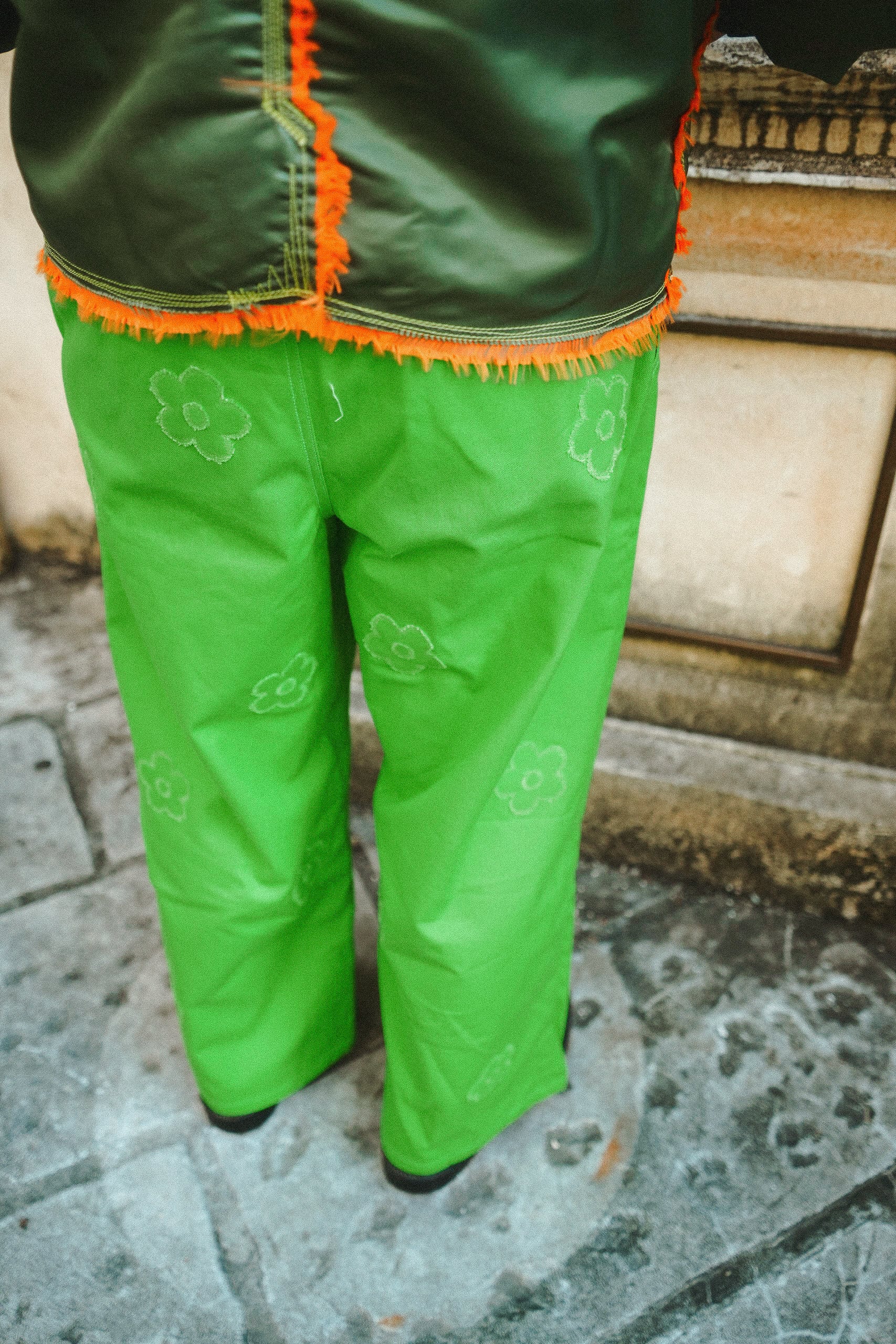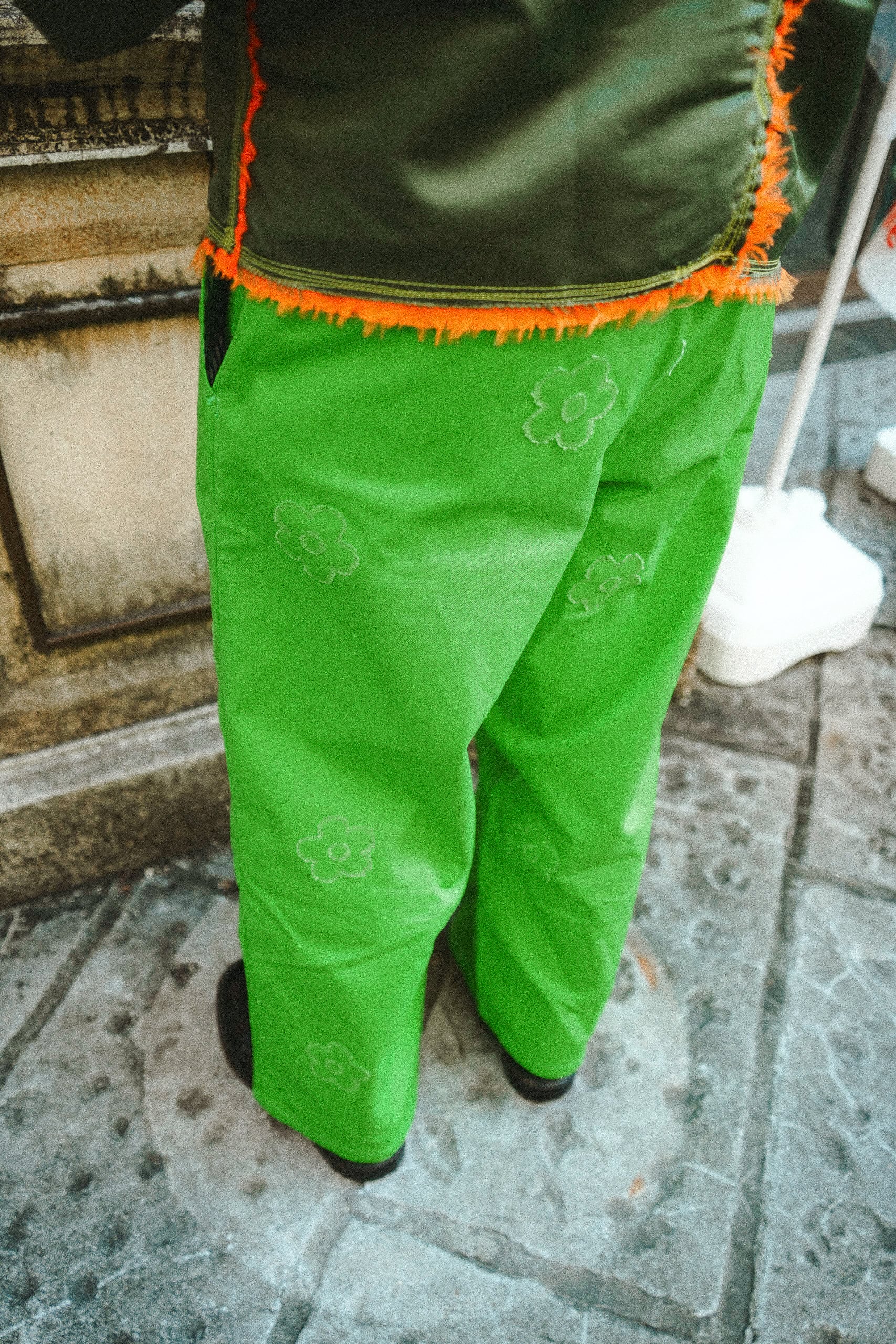 YAOYAの大人気アイテムであるフラワーパッチパンツ。