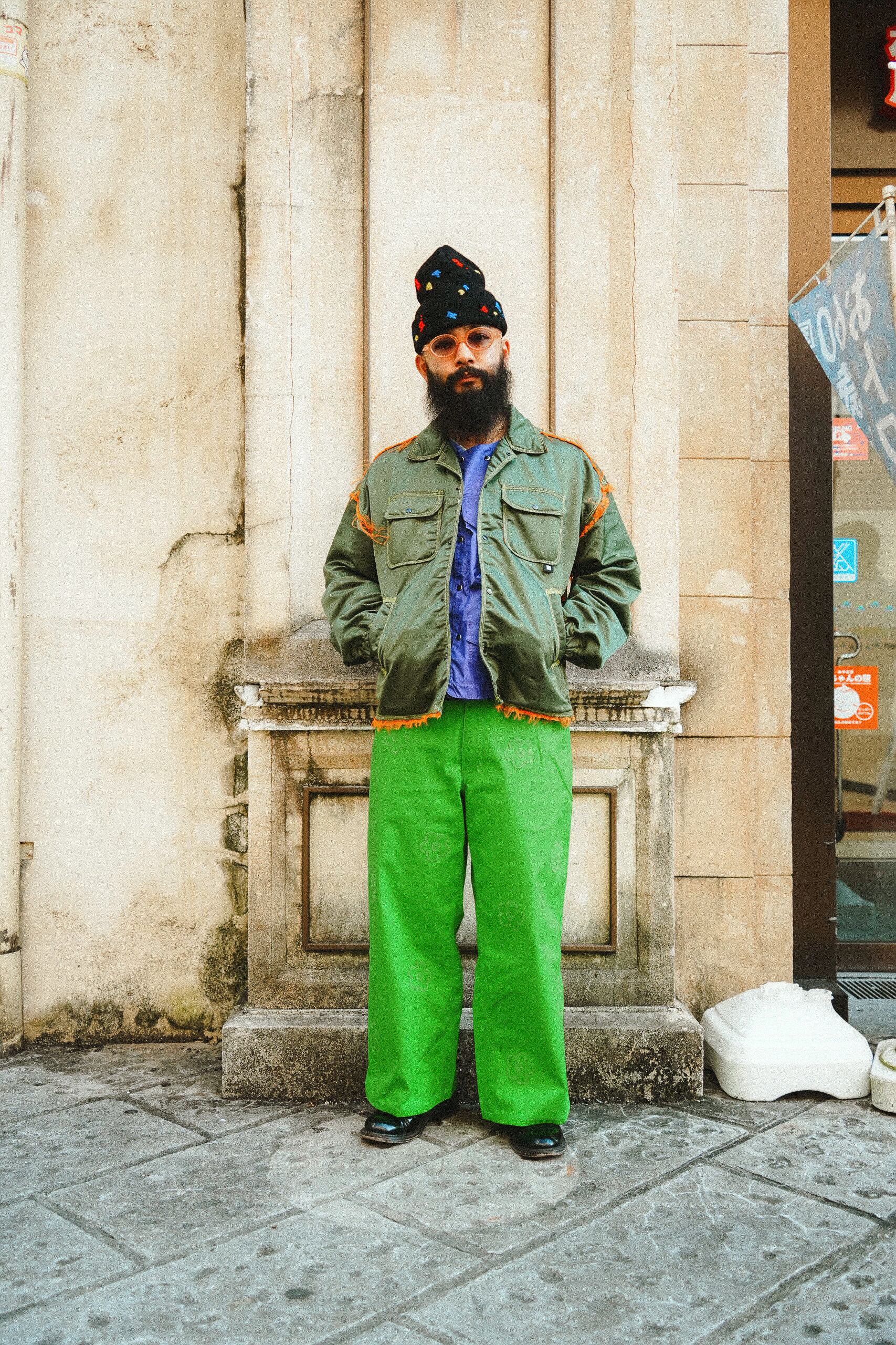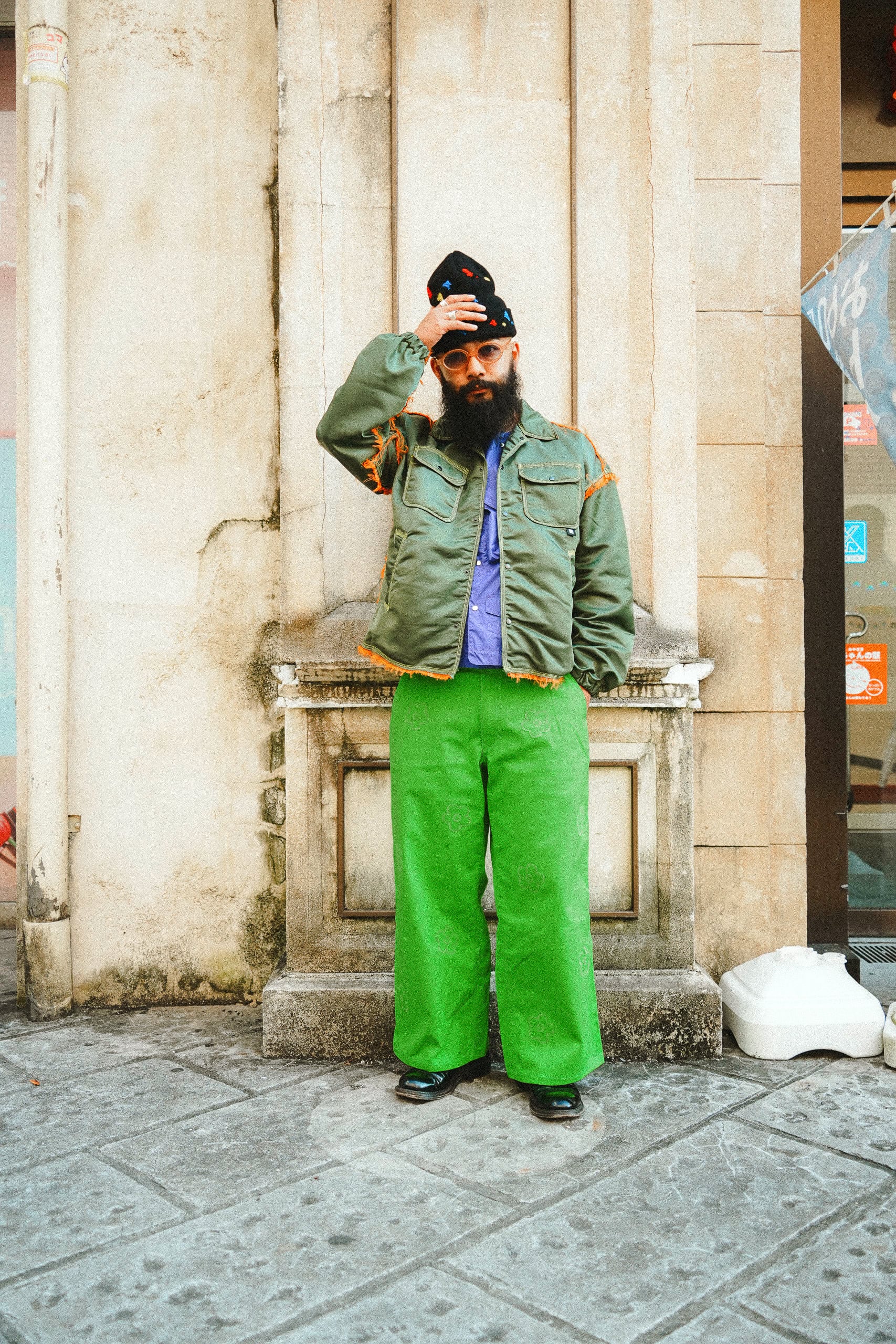 シルエットはワイドストレートとなっており、その太さとデザインがアクセントを効かせているため、トップスはシンプルなもので合わせるのがオススメ。