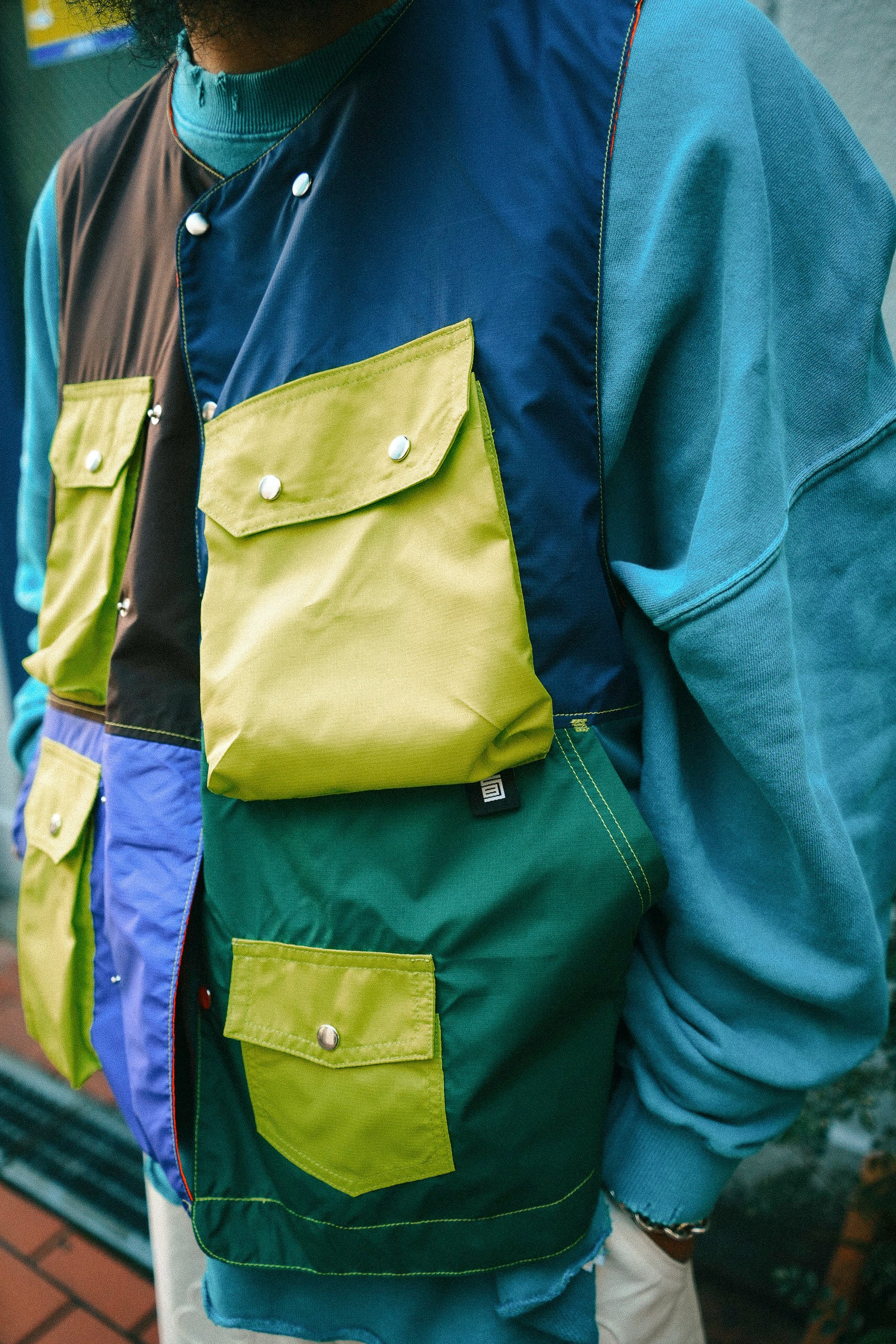 気の利いたサイズのポケットをバランスよく全体に配置しており、身の回りの小物はほとんど収容可能のためバックがわりにもなる優れアイテム。