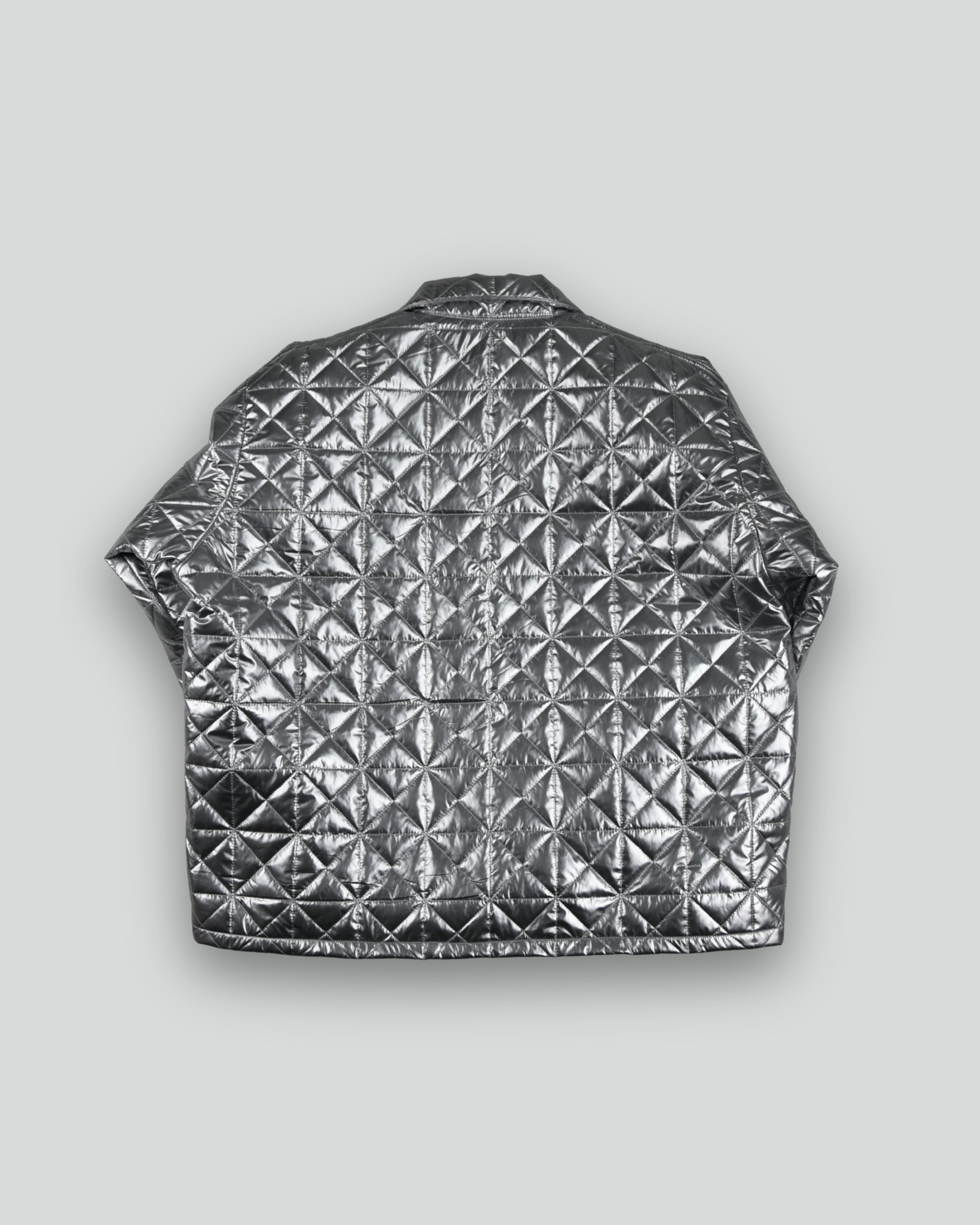 QUILTING DOUBLE COACH JACKET SILVER