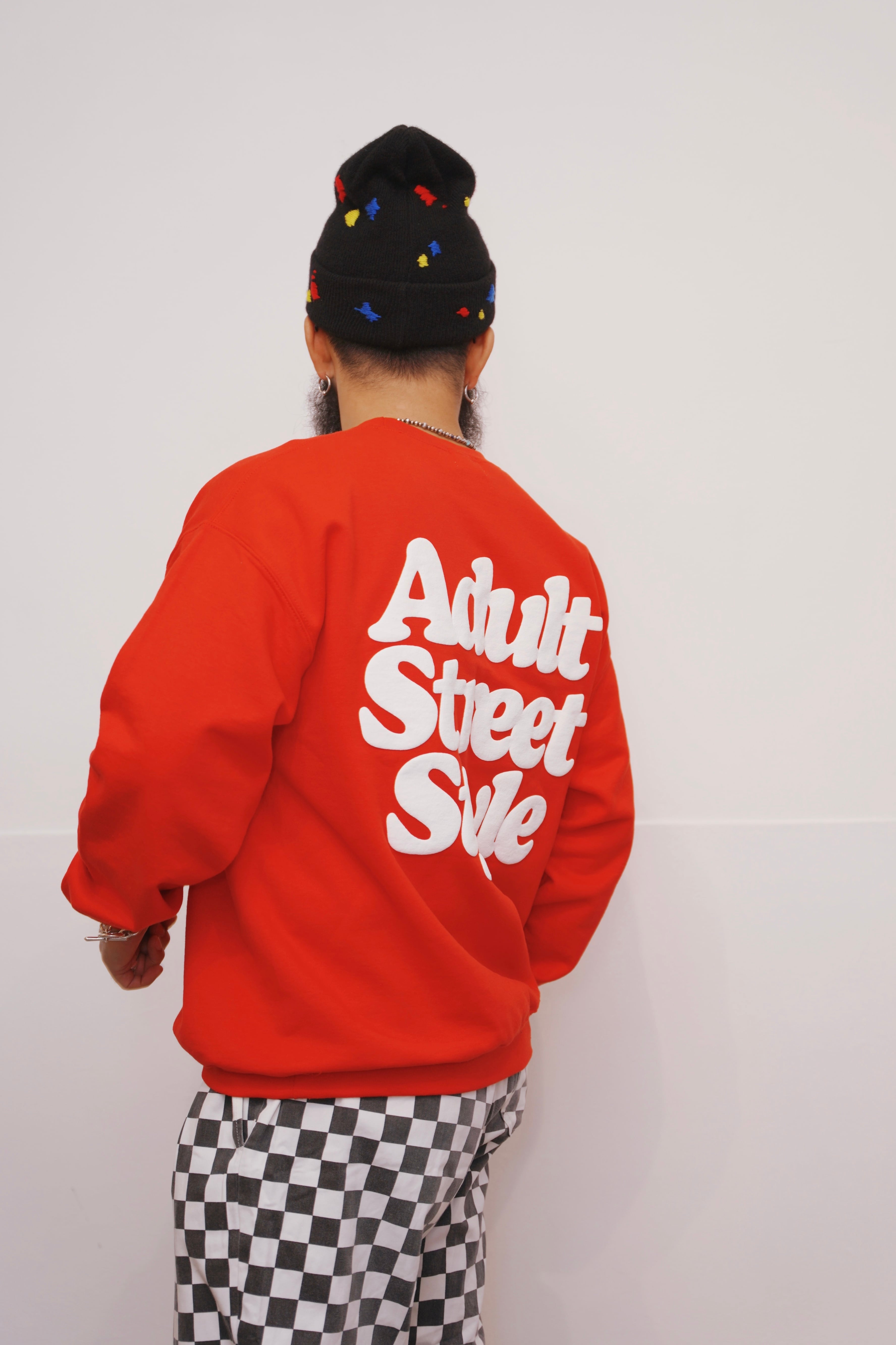 Mine&Mom.のコンセプトである"Adult Street Style"のロゴを左胸ワンポイントとバックに大きくプリントしたスウェット。