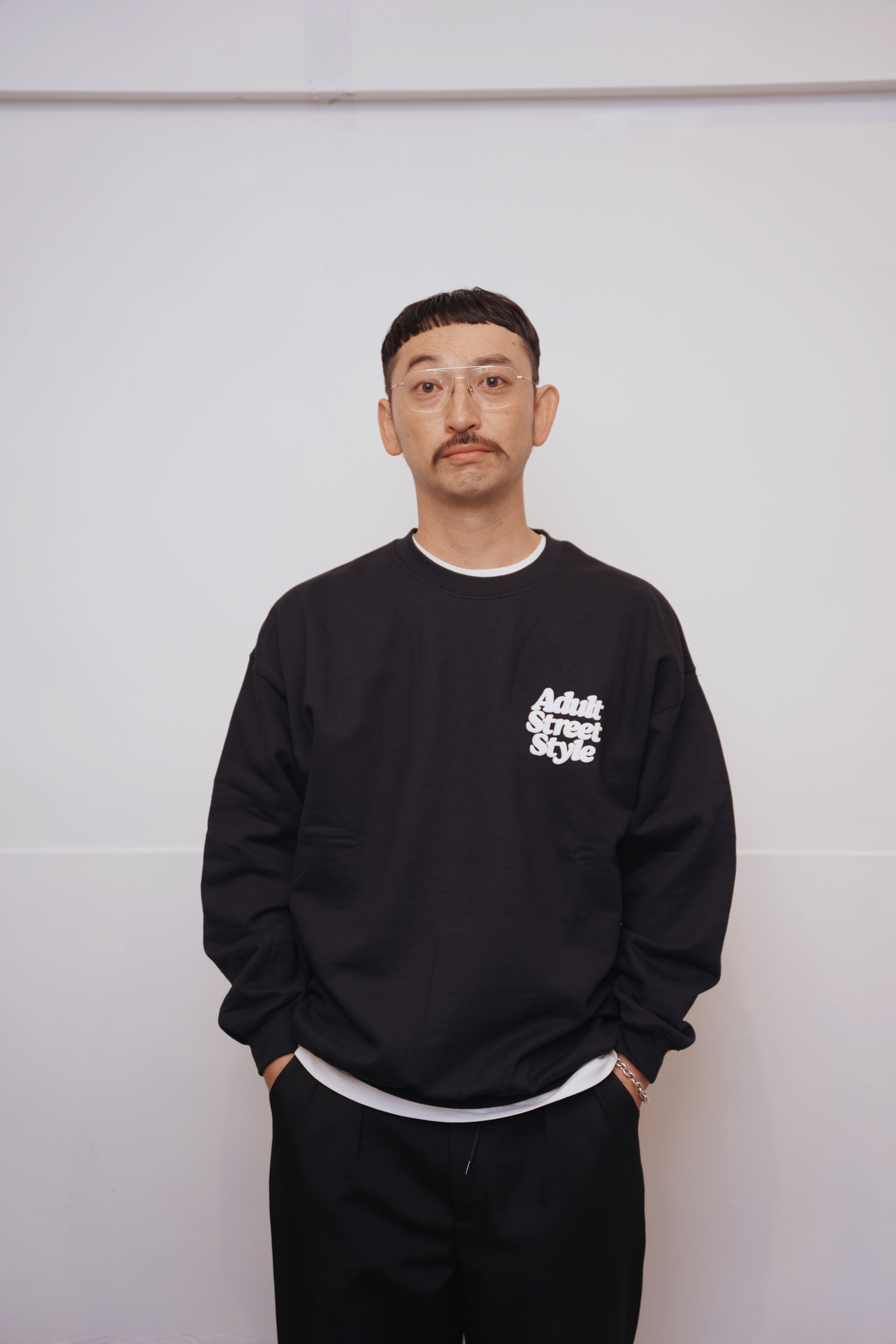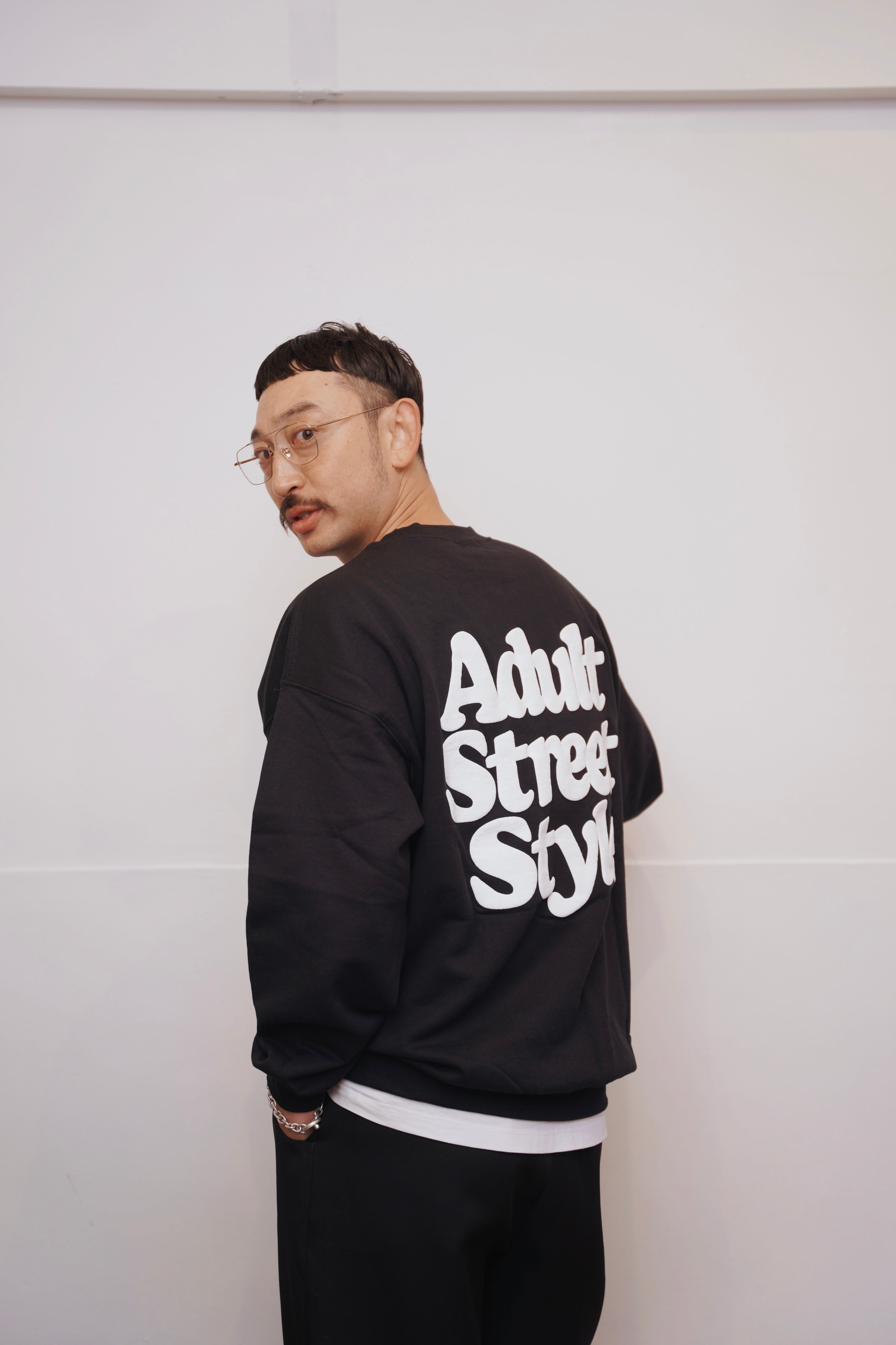Mine&Mom.のコンセプトである"Adult Street Style"のロゴを左胸ワンポイントとバックに大きくプリントしたスウェット。