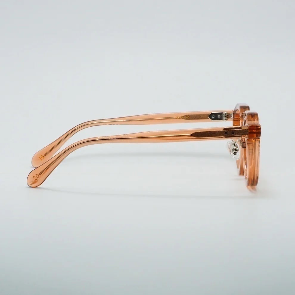 メタル入りのテンプルや7枚丁番のパーツを用いることで高度な耐久性とデザイン性を実現。