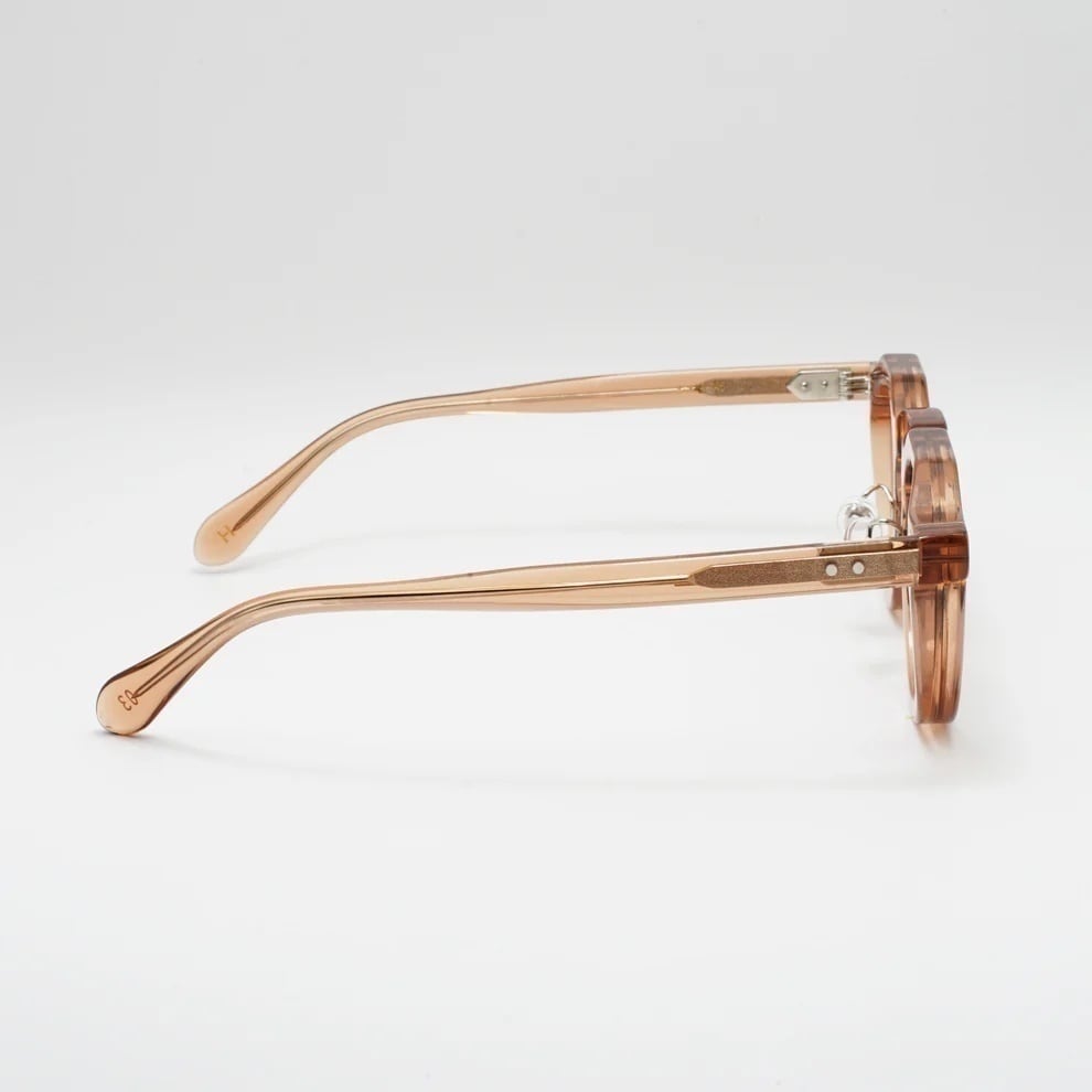 メタル入りのテンプルや7枚丁番のパーツを用いることで高度な耐久性とデザイン性を実現。