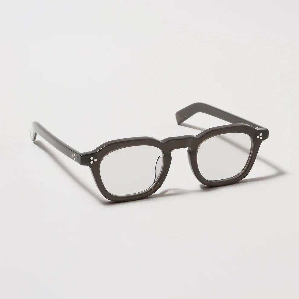 肉厚なフロントと3点のリアルリベットやテンプルデザインが特徴。