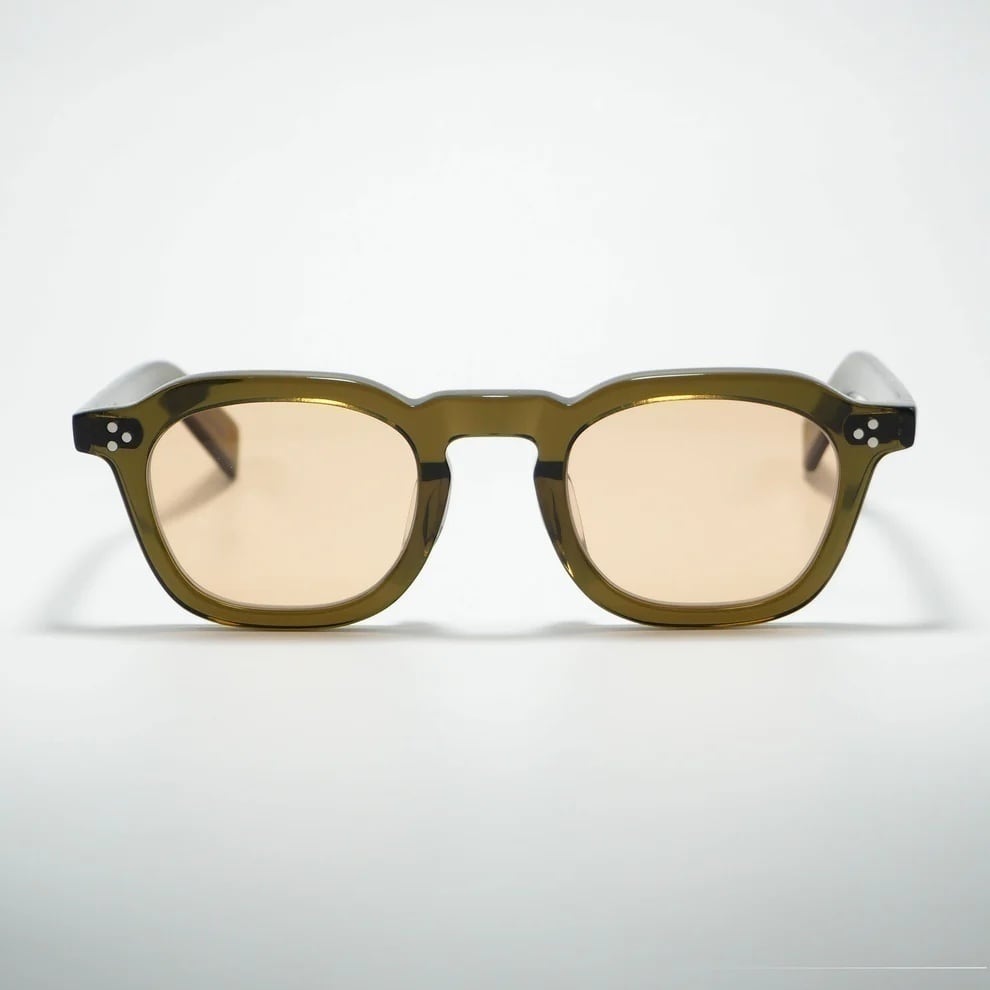 肉厚なフロントと3点のリアルリベットやテンプルデザインが特徴。