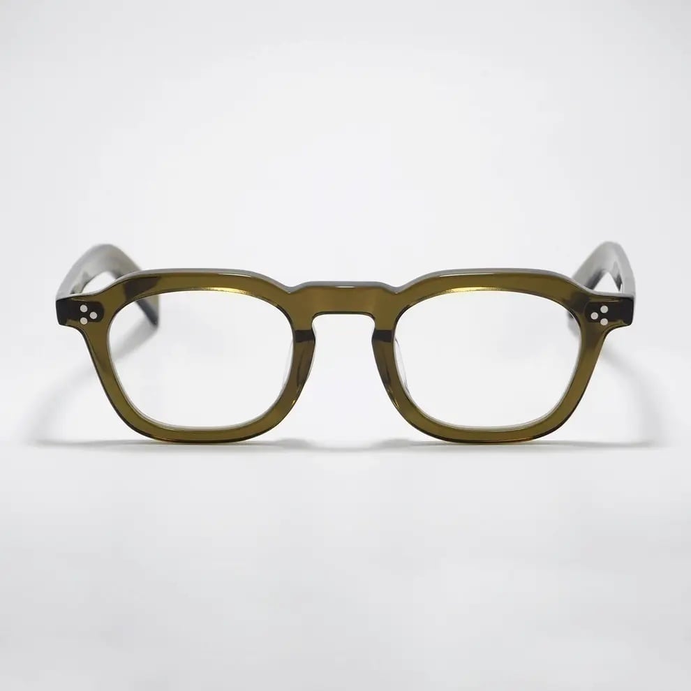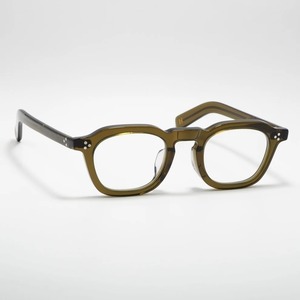 肉厚なフロントと3点のリアルリベットやテンプルデザインが特徴。