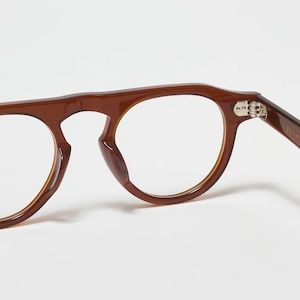 滑らかに流れるテンプルや艶を抑えたアセテート素材が、落ち着いた存在感を引き立てます。