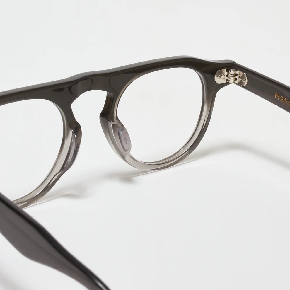 滑らかに流れるテンプルや艶を抑えたアセテート素材が、落ち着いた存在感を引き立てます。