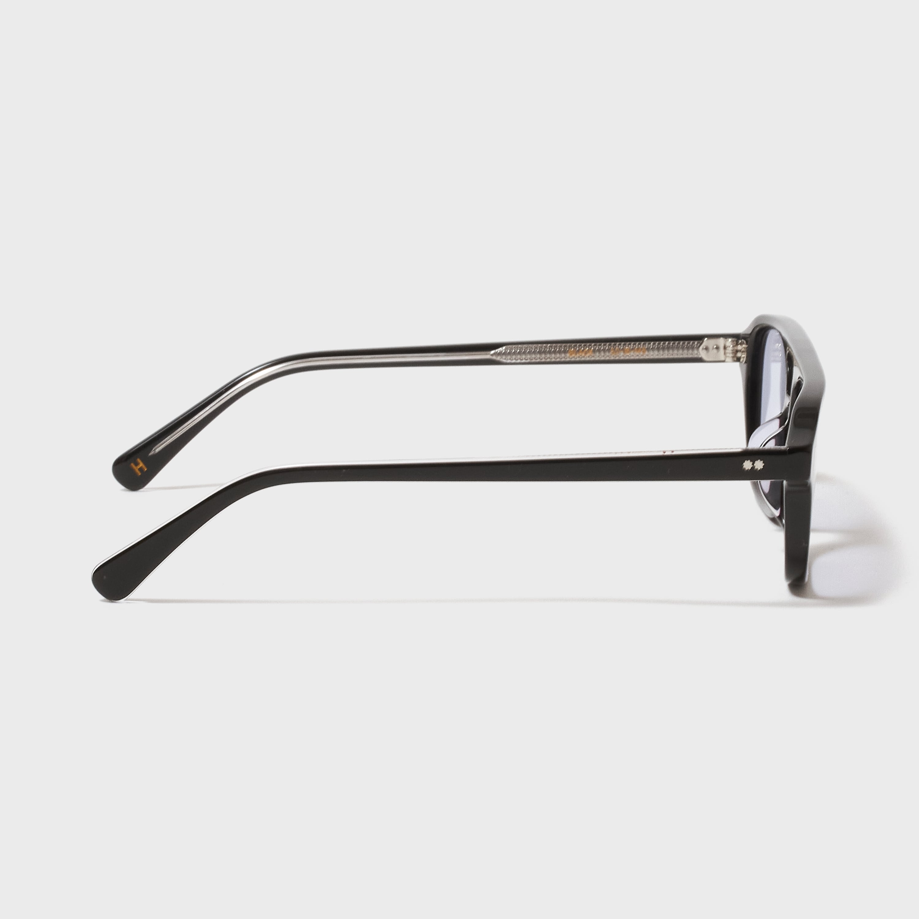 デザイン自体は、セルフレームのダブルブリッジと個性的ながら、ミニマルなデザインと少し細目にしたセルフレームで