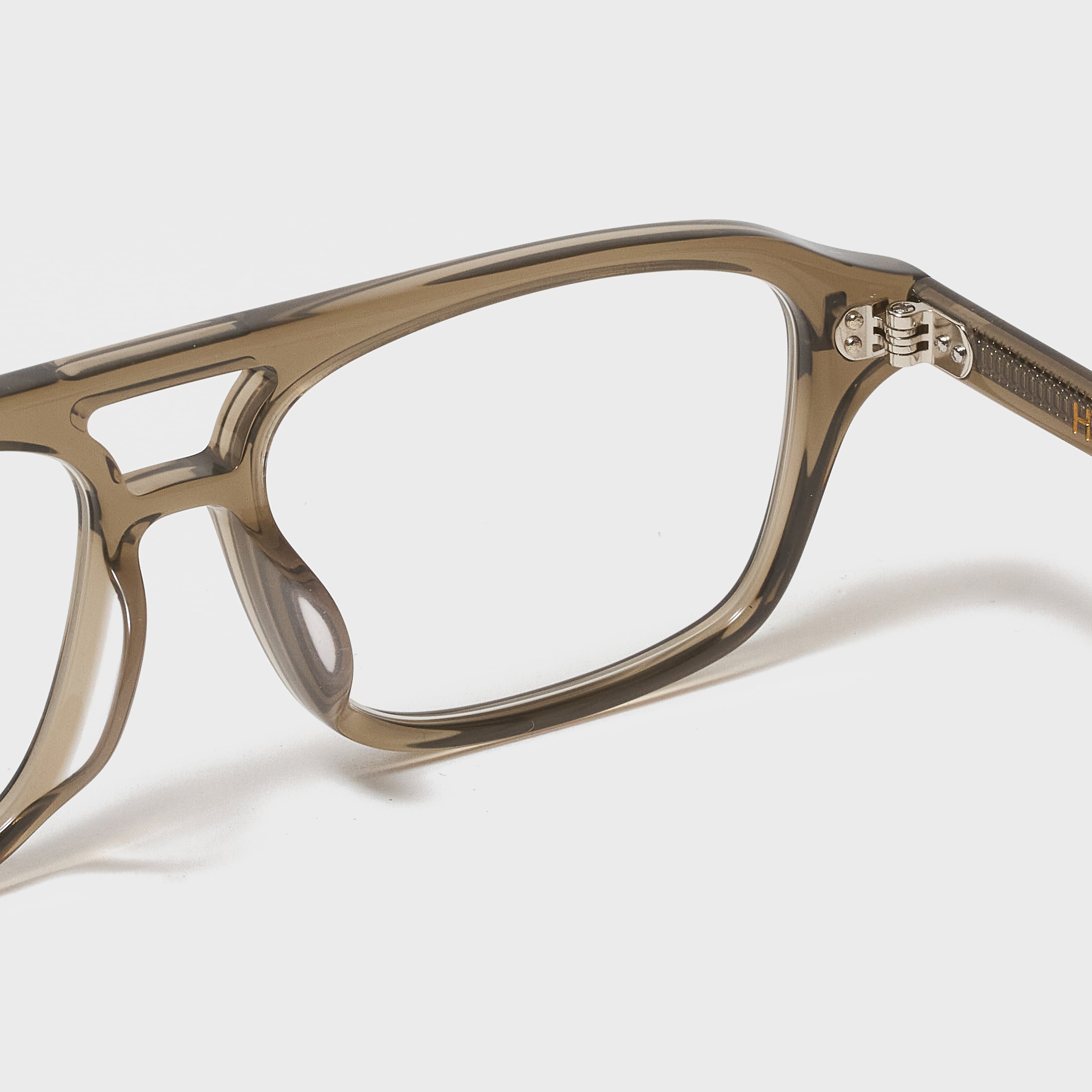 デザイン自体は、セルフレームのダブルブリッジと個性的ながら、ミニマルなデザインと少し細目にしたセルフレームで