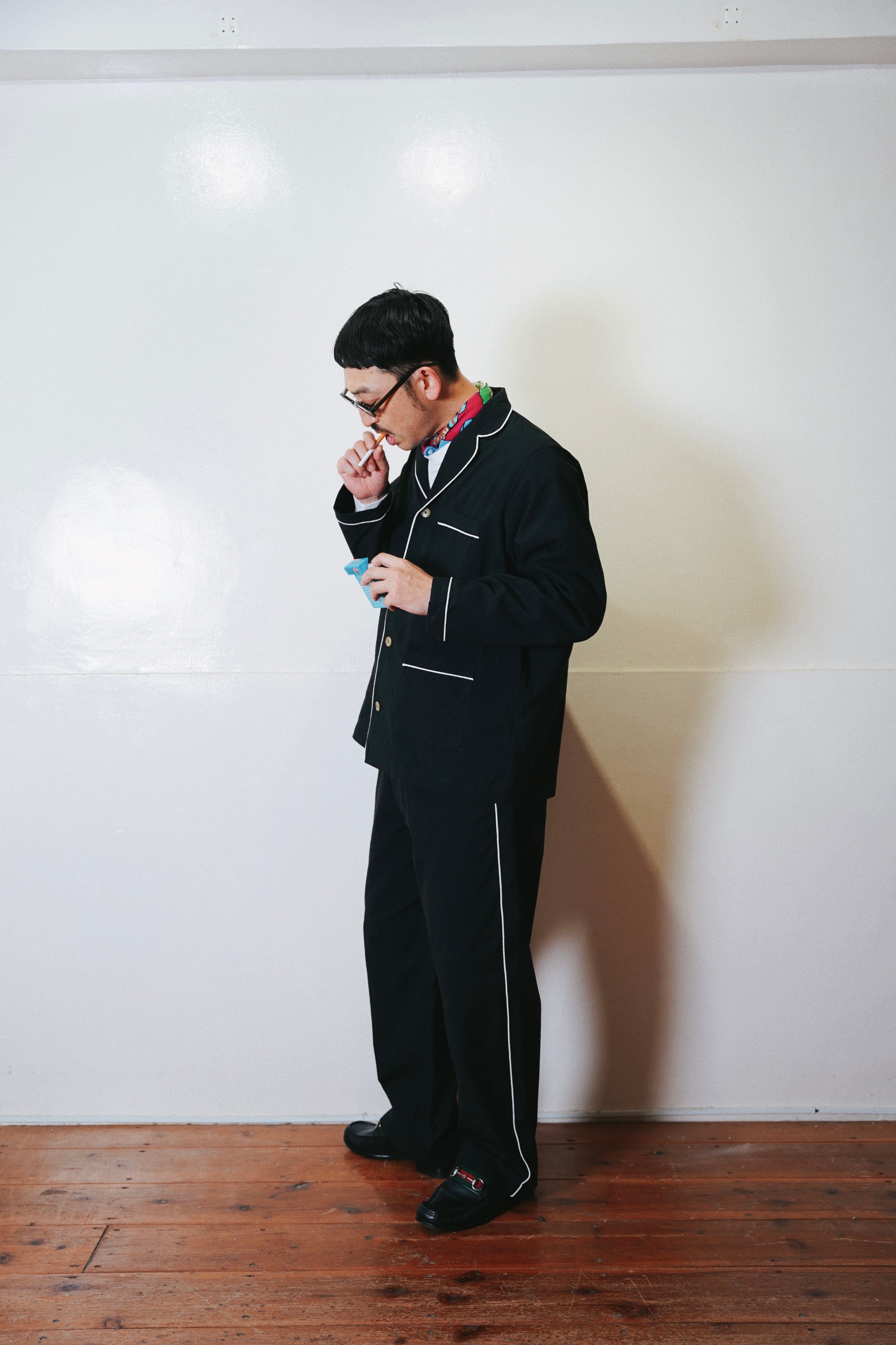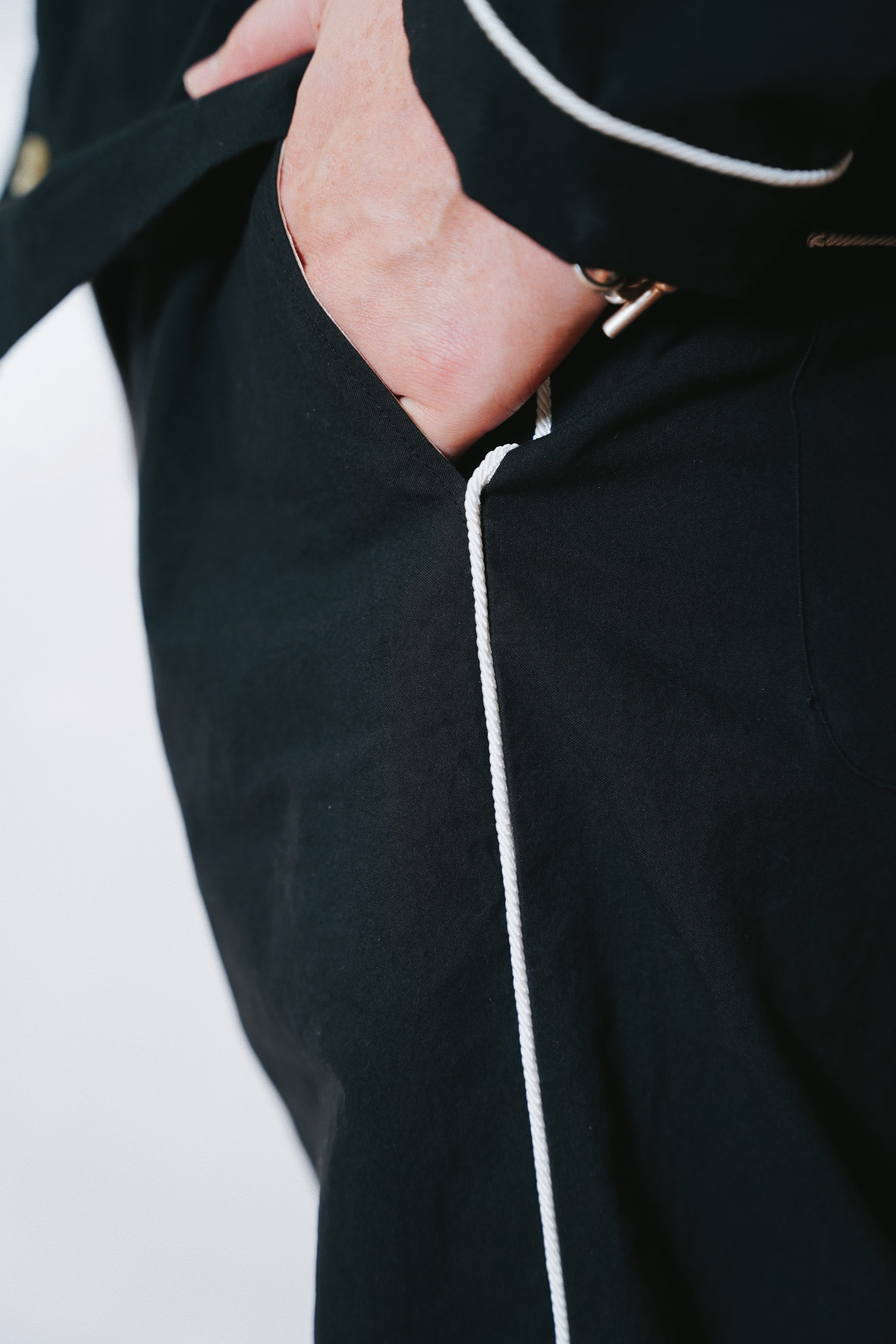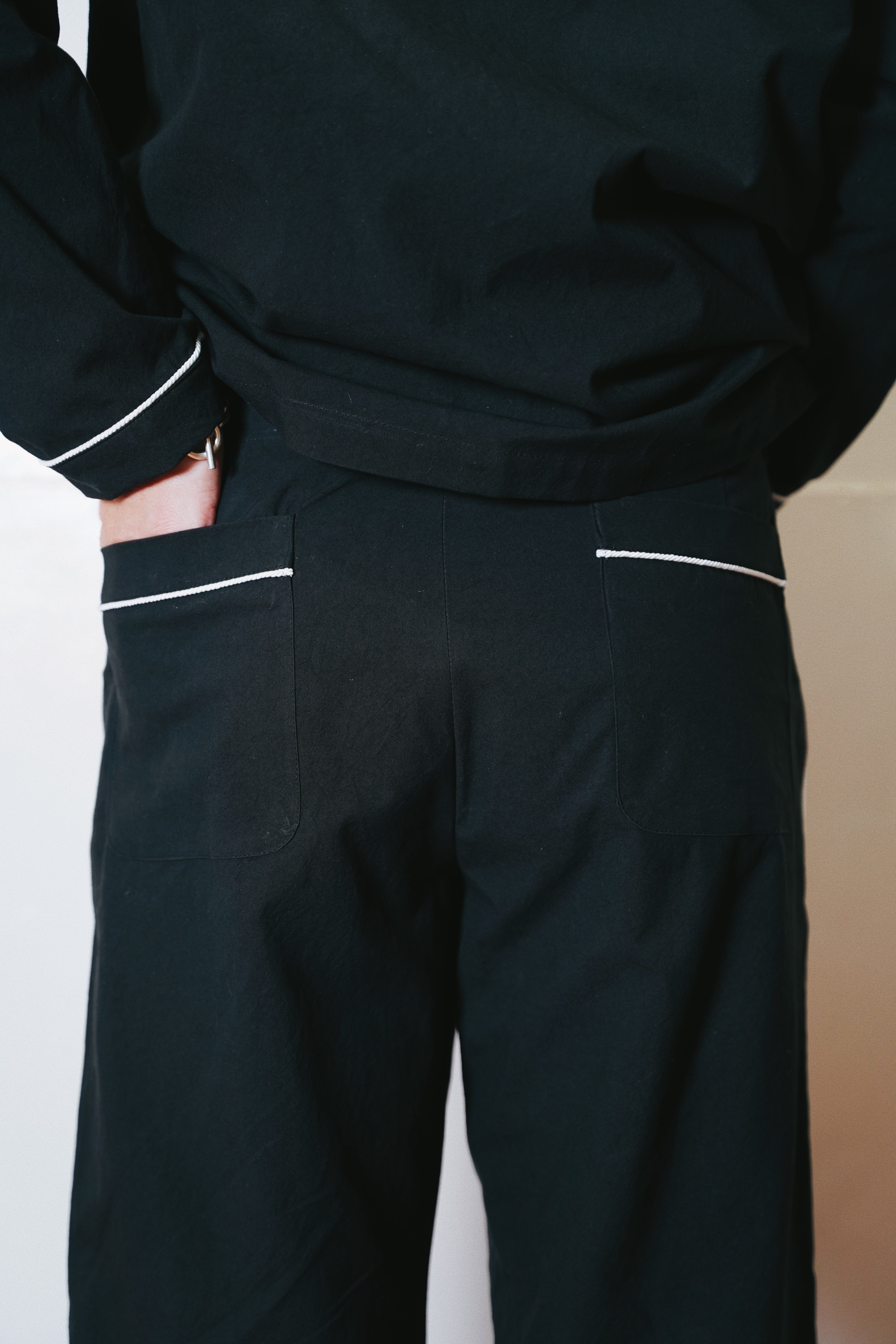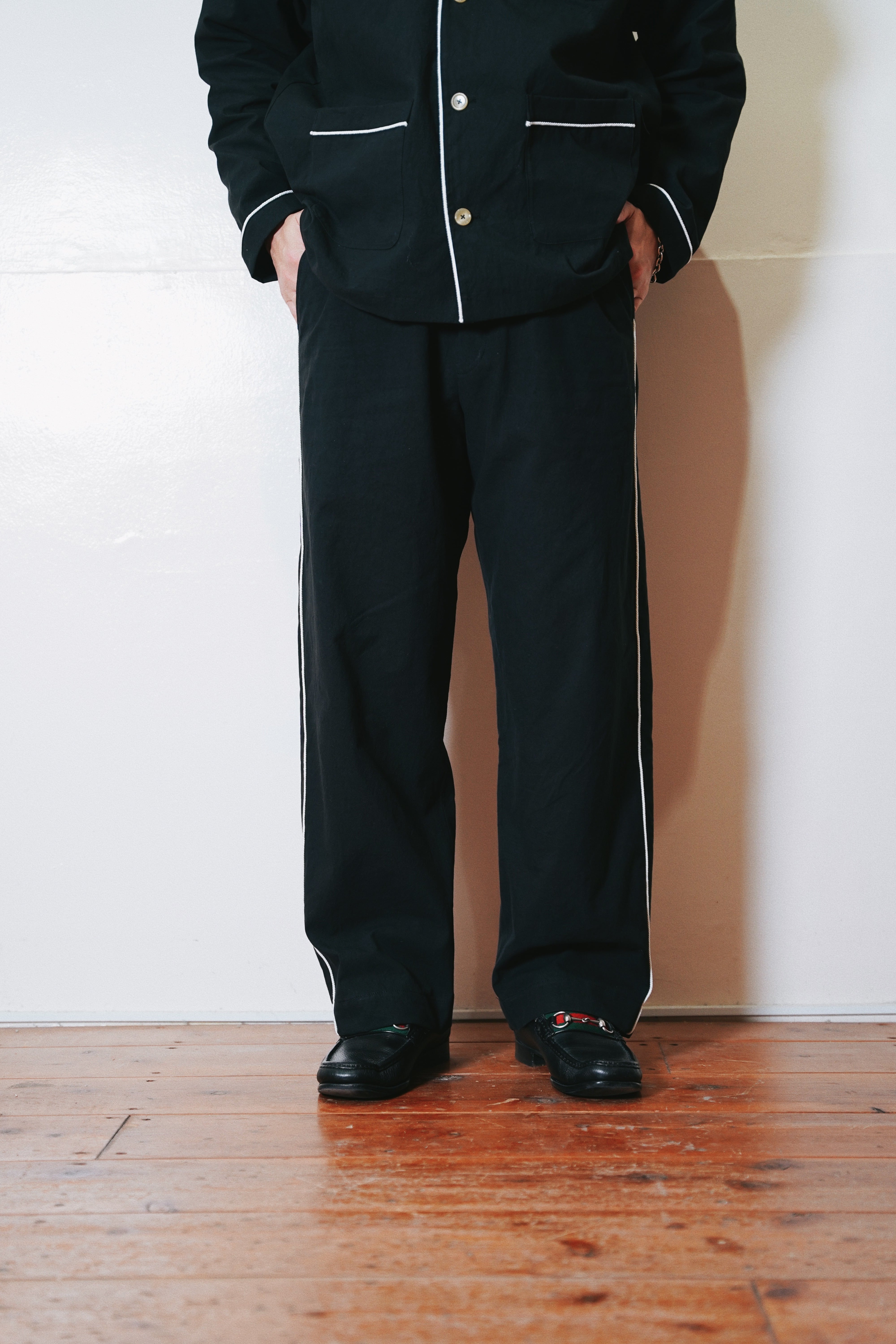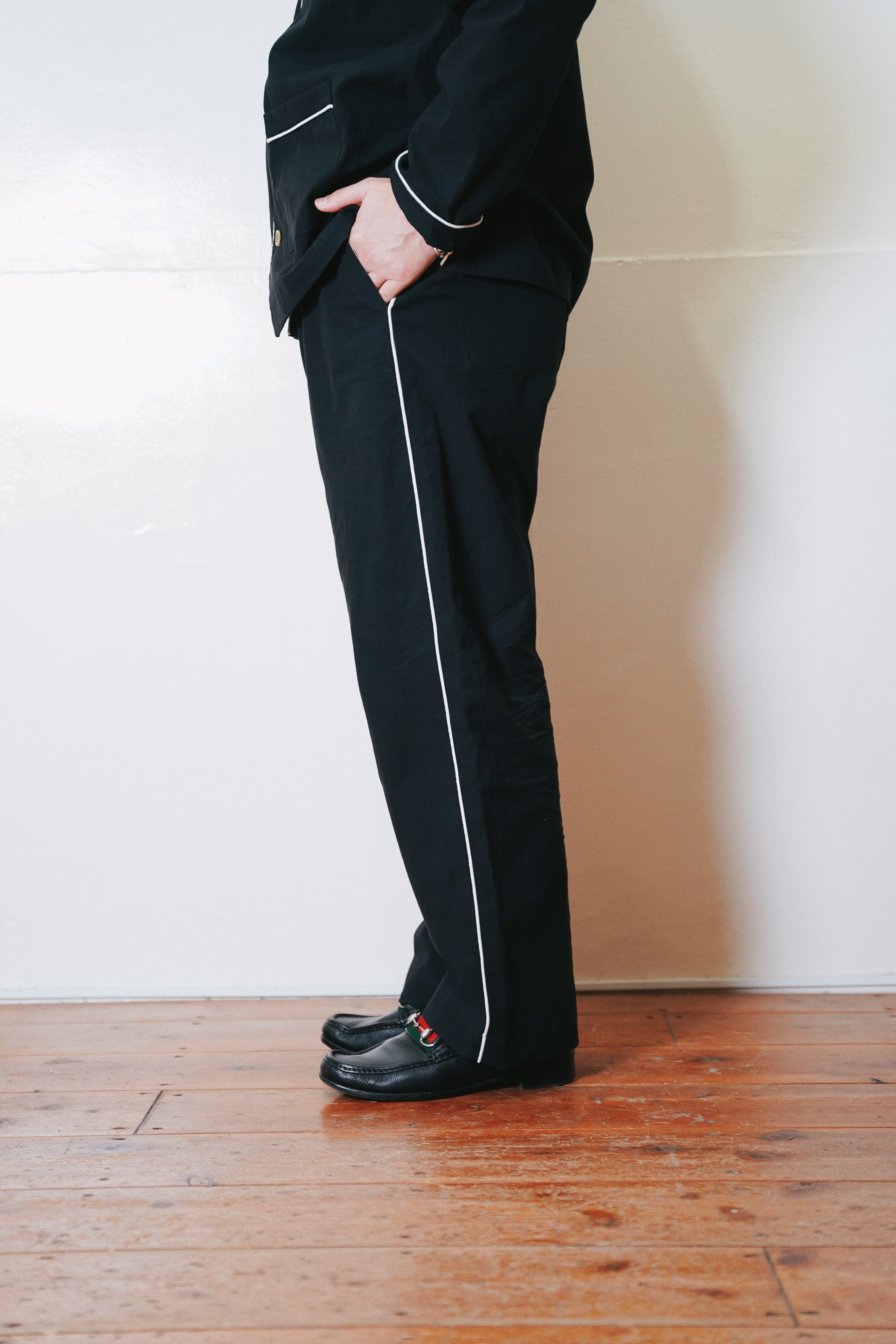 全体にロープパイピングを施したパジャマパンツ。