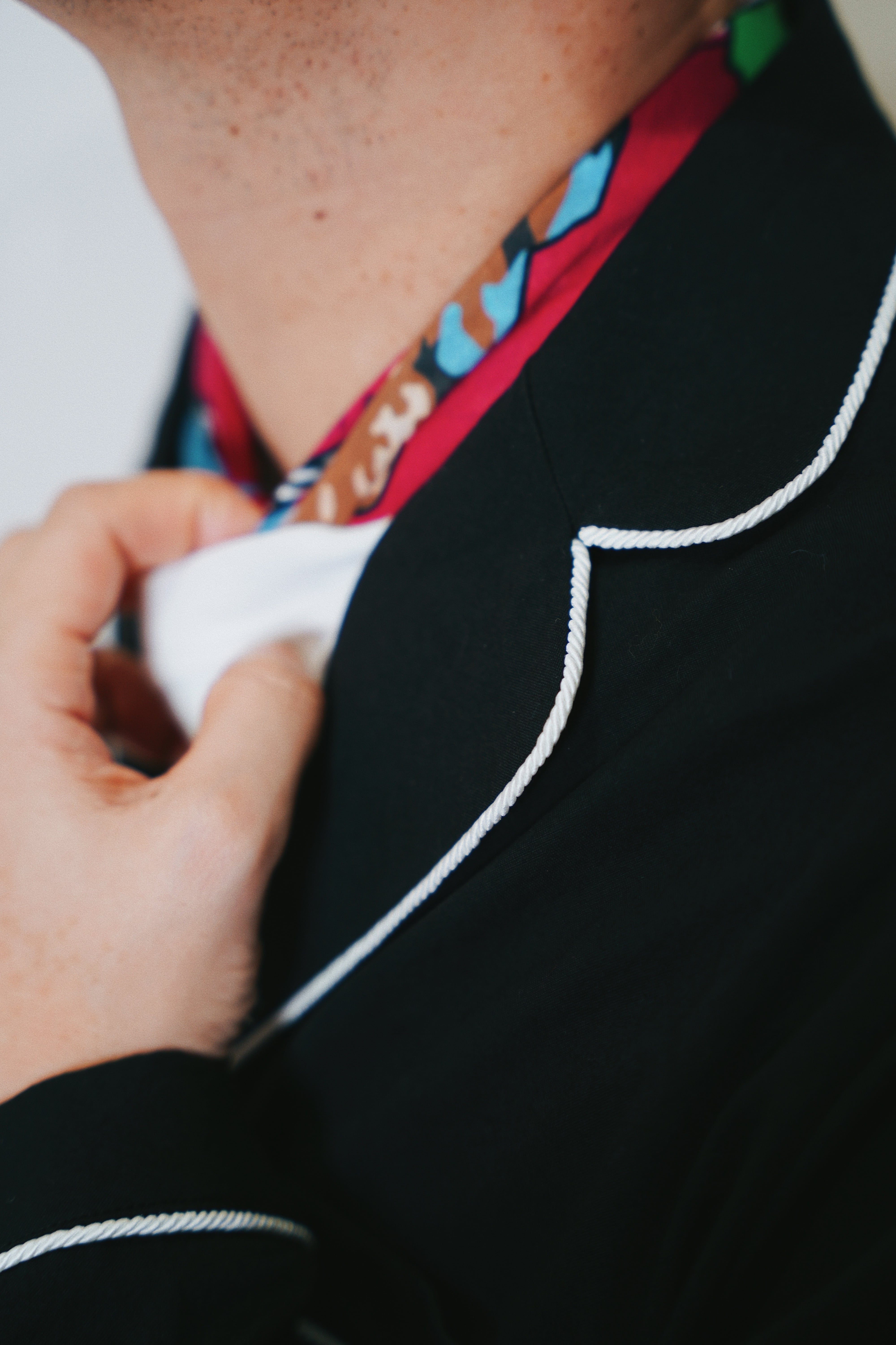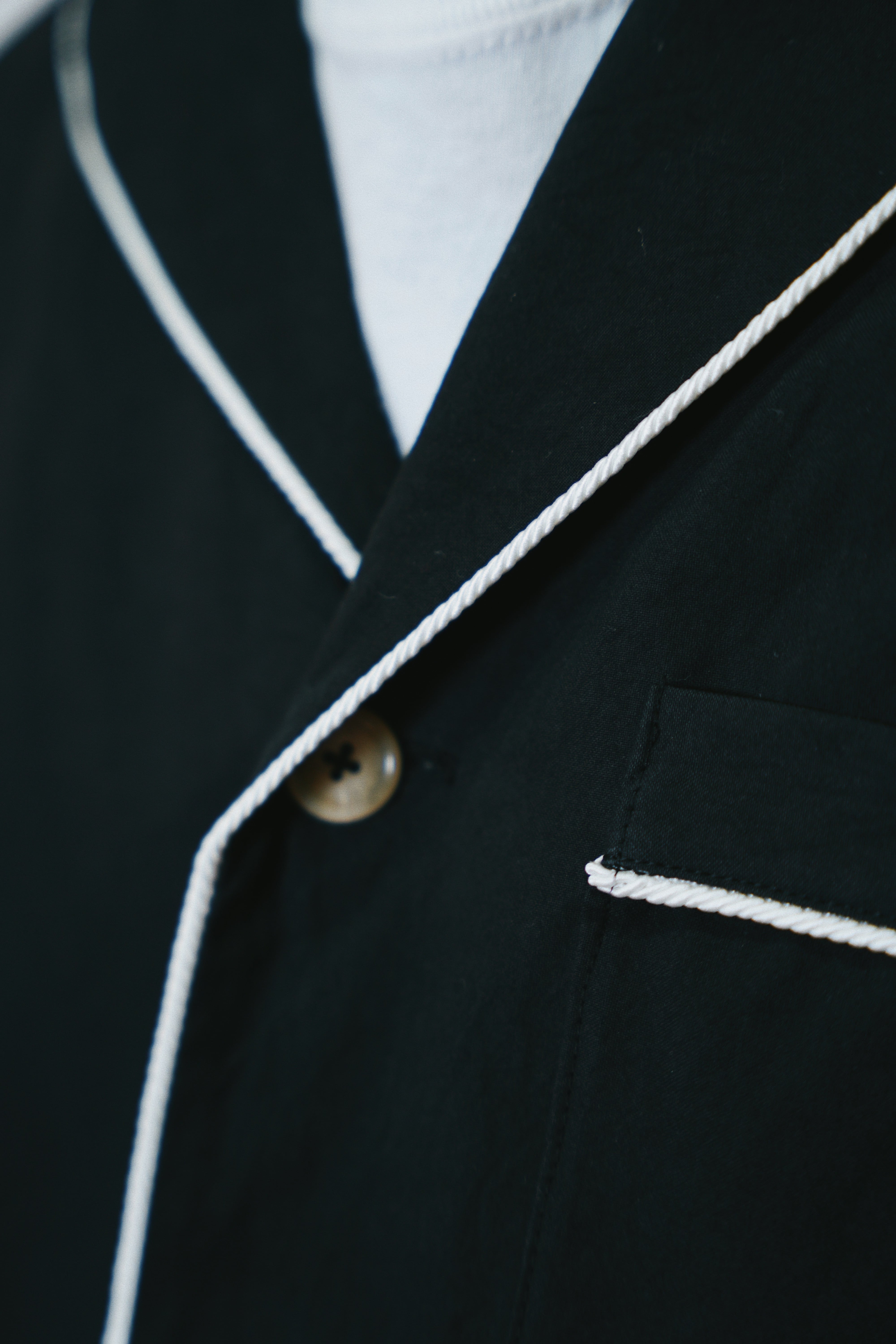 全体にロープパイピングを施したパジャマシャツ。