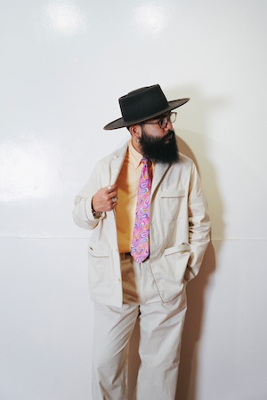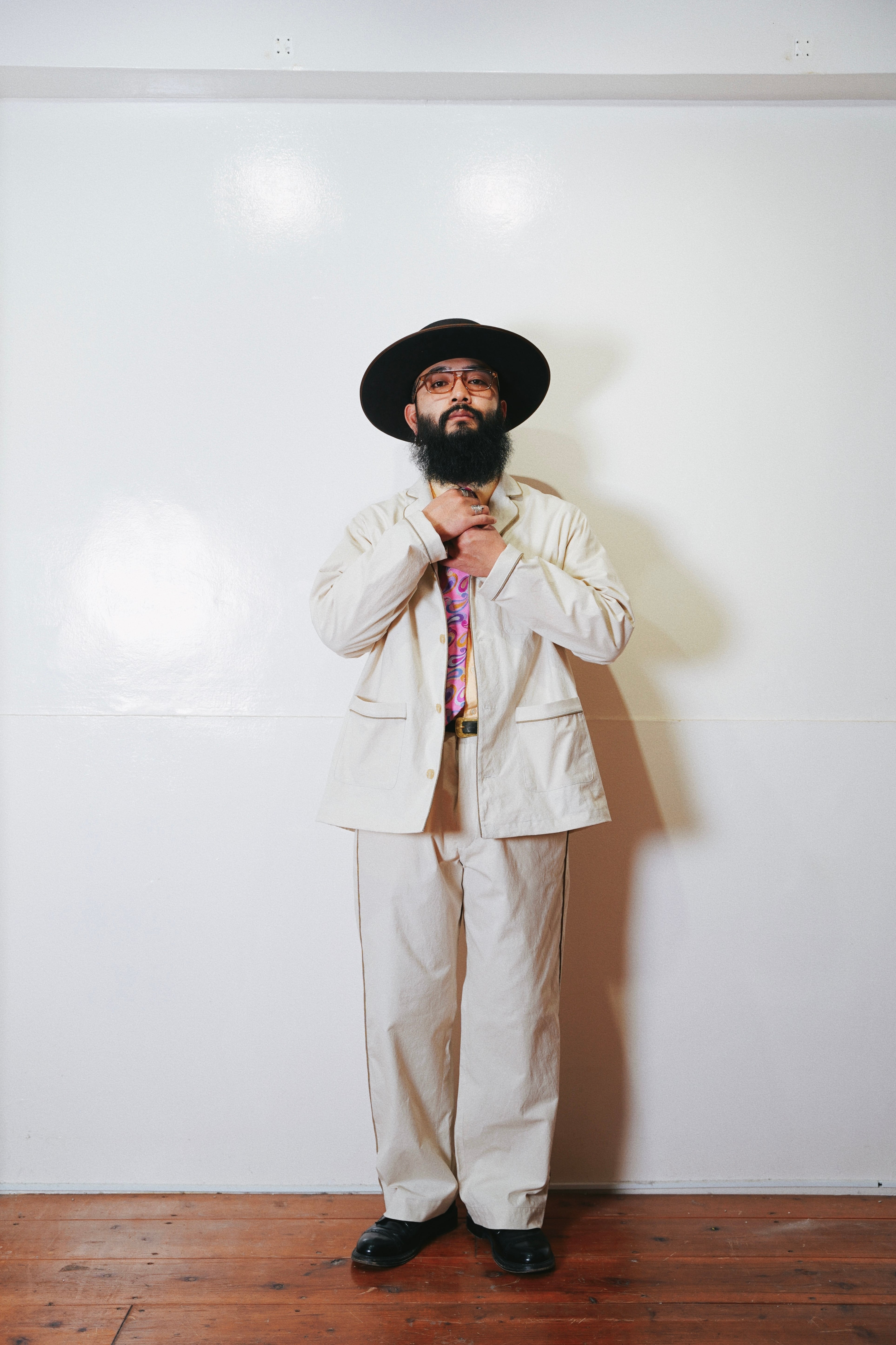 天日乾燥させたコットンナイロン生地を採用することで生地の表情に色のムラ感やシワ感が生まれ、カジュアルな雰囲気に仕上げている。