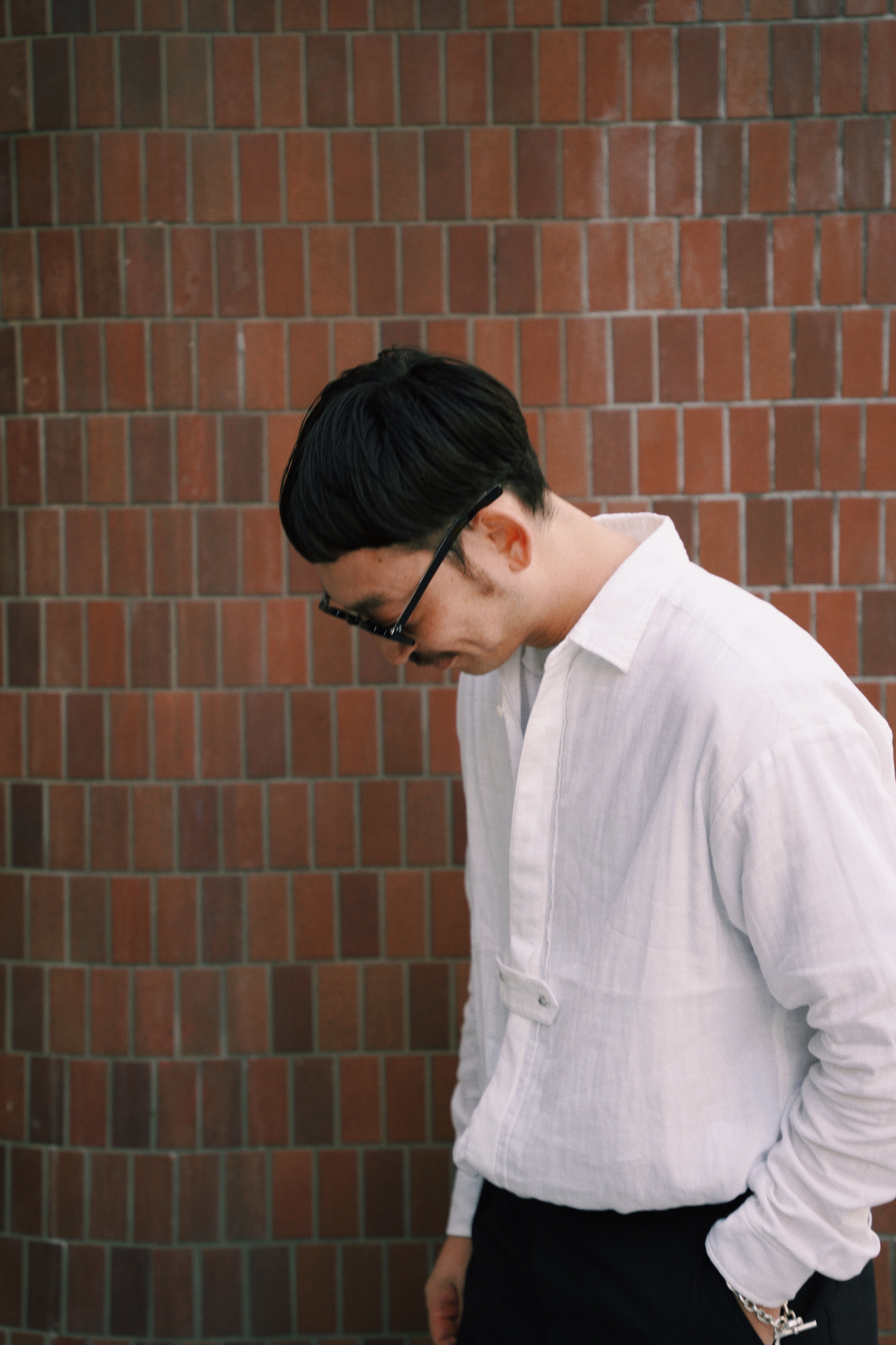 一見シンプルなシャツながら、生地、サイズ感、カレー、比翼やシルバーボタンと全てのディティールが噛み合うことでトップスとして1枚でも、インナーとしても活躍する滅多に出会えない唯一無二のシャツに仕上がっている。
