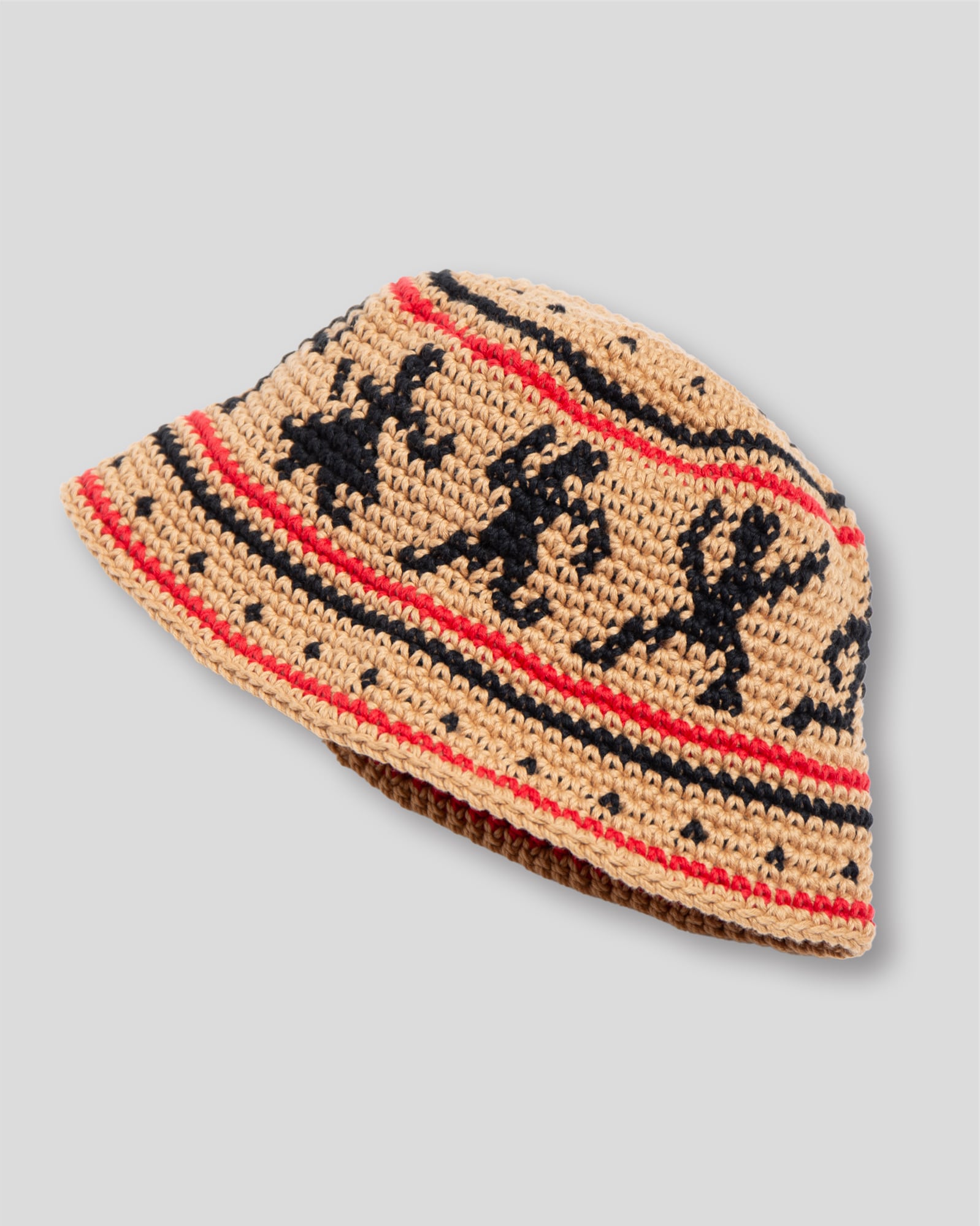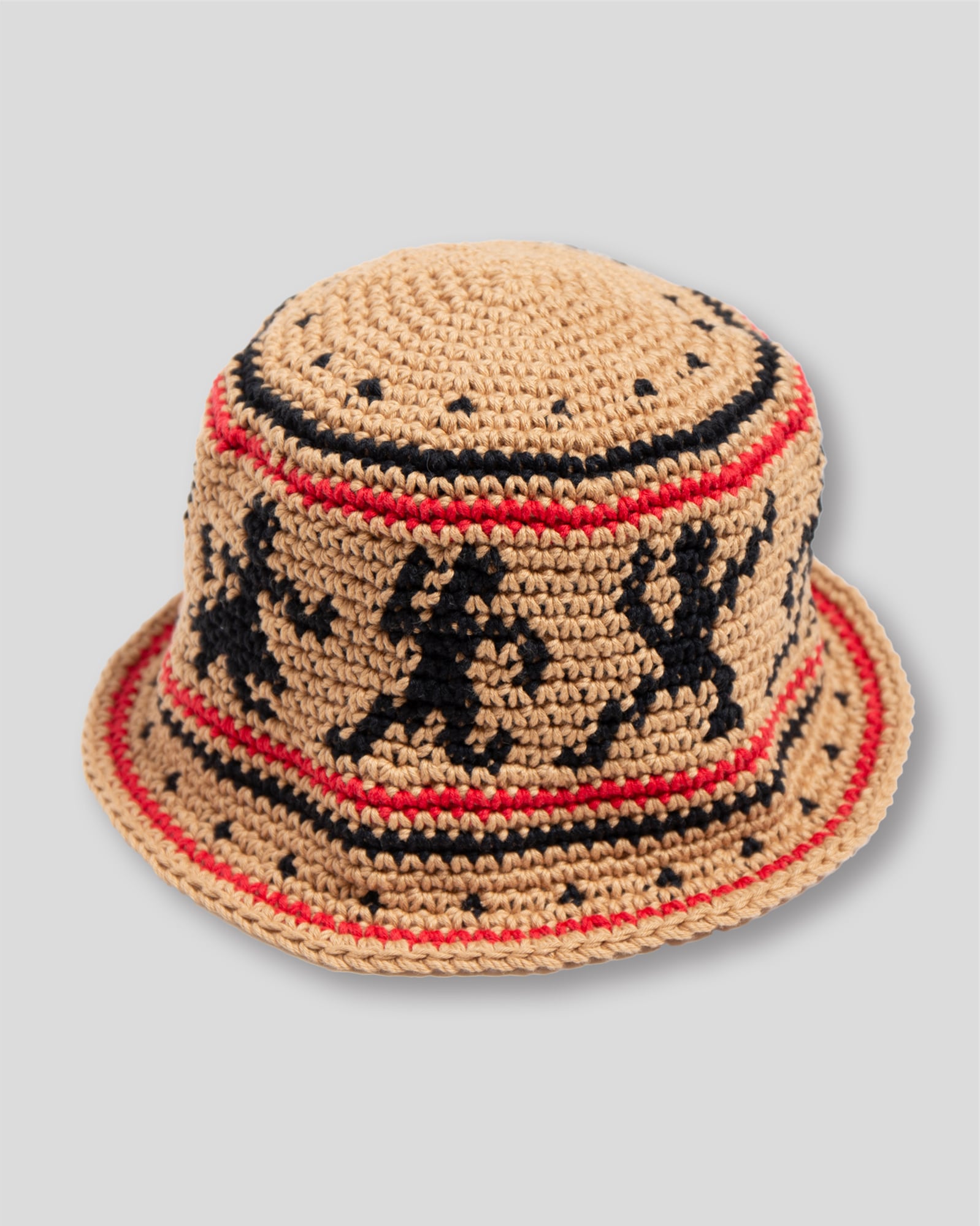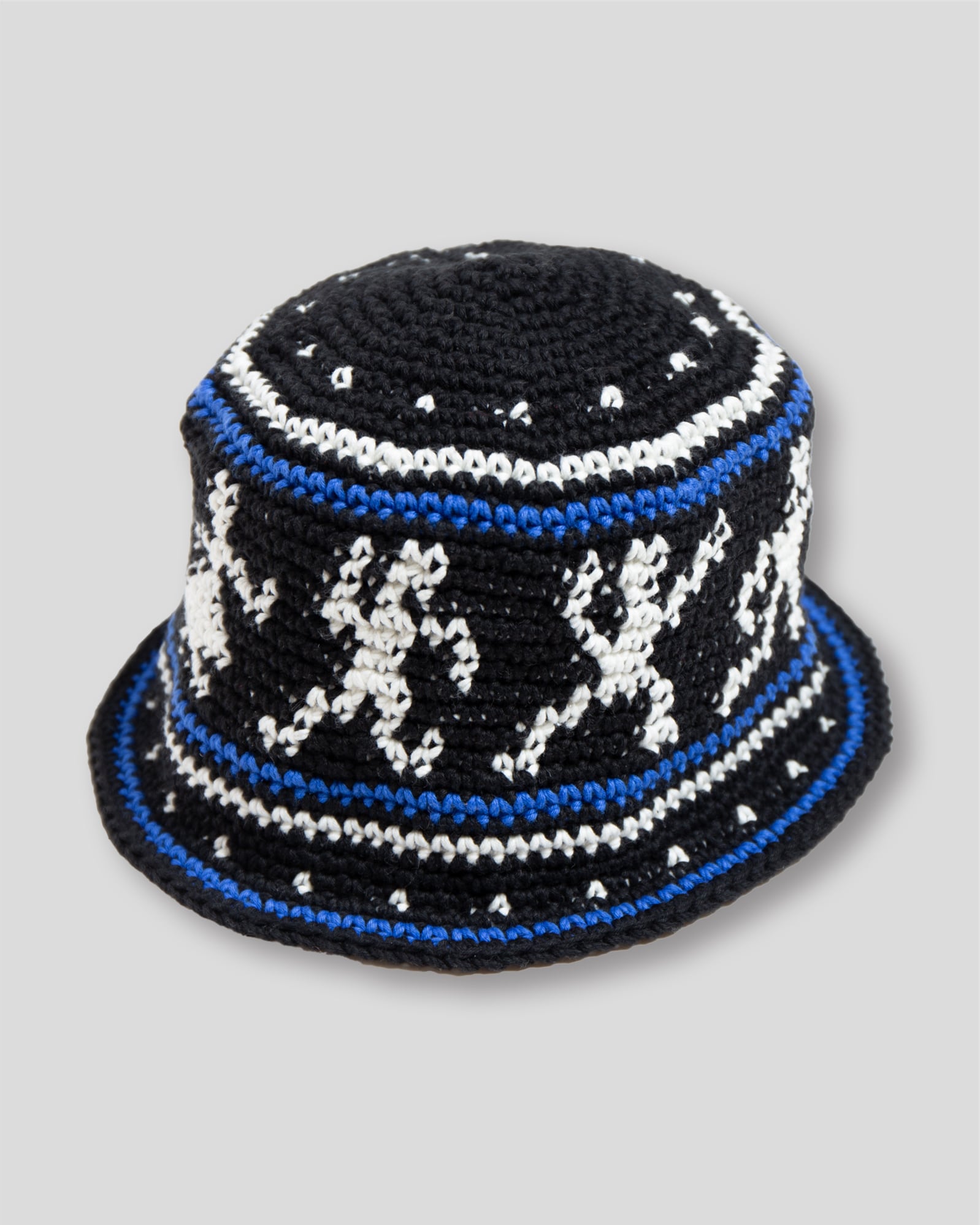 ハンドニットで編み立てたニットハットです。60年代カウンターカルチャーを象徴とするウッドストックをイメージしたデザインが特徴になっています。糸はコットン糸を使用している為、シーズン問わずご使用頂けます。着用をしていくうちに頭にフィットをしていくよう少しきつめのサイズ感になっています。中性洗剤を使用してぬるま湯で手洗いすることが可能です。
