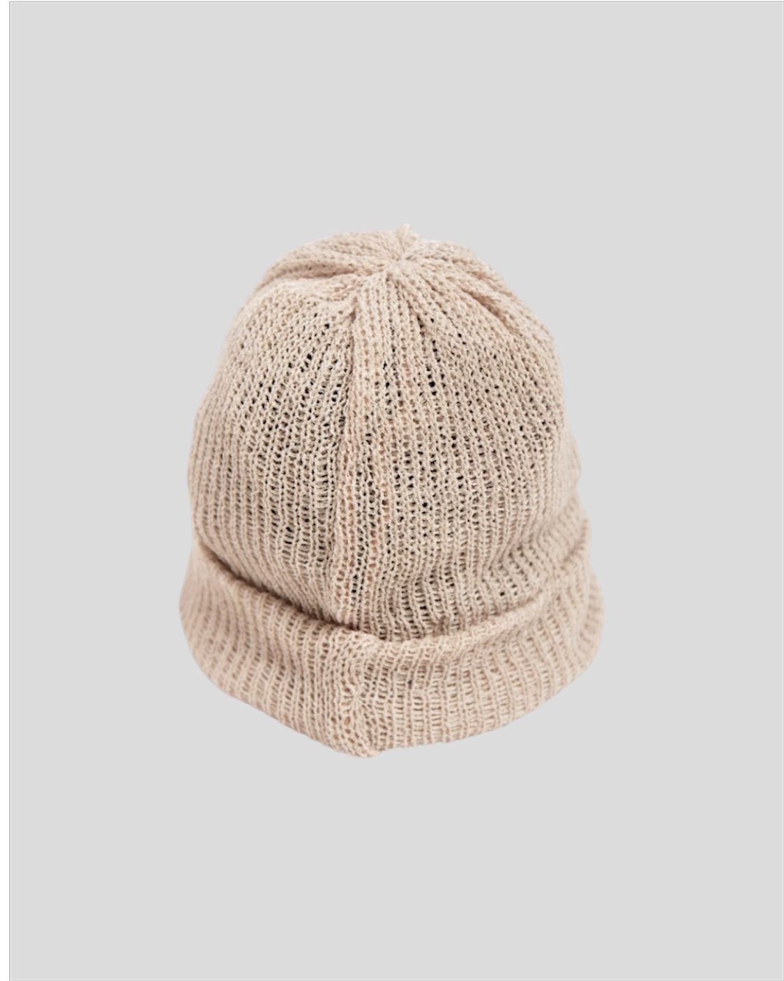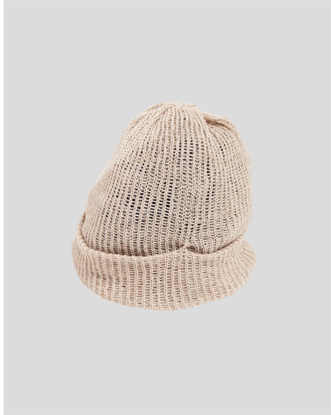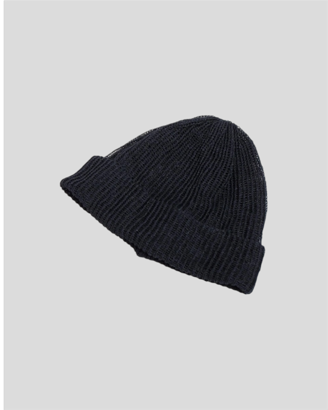 透け感のある編地とルーズなシルエットが特徴の、シアーメッシュニットキャップ。