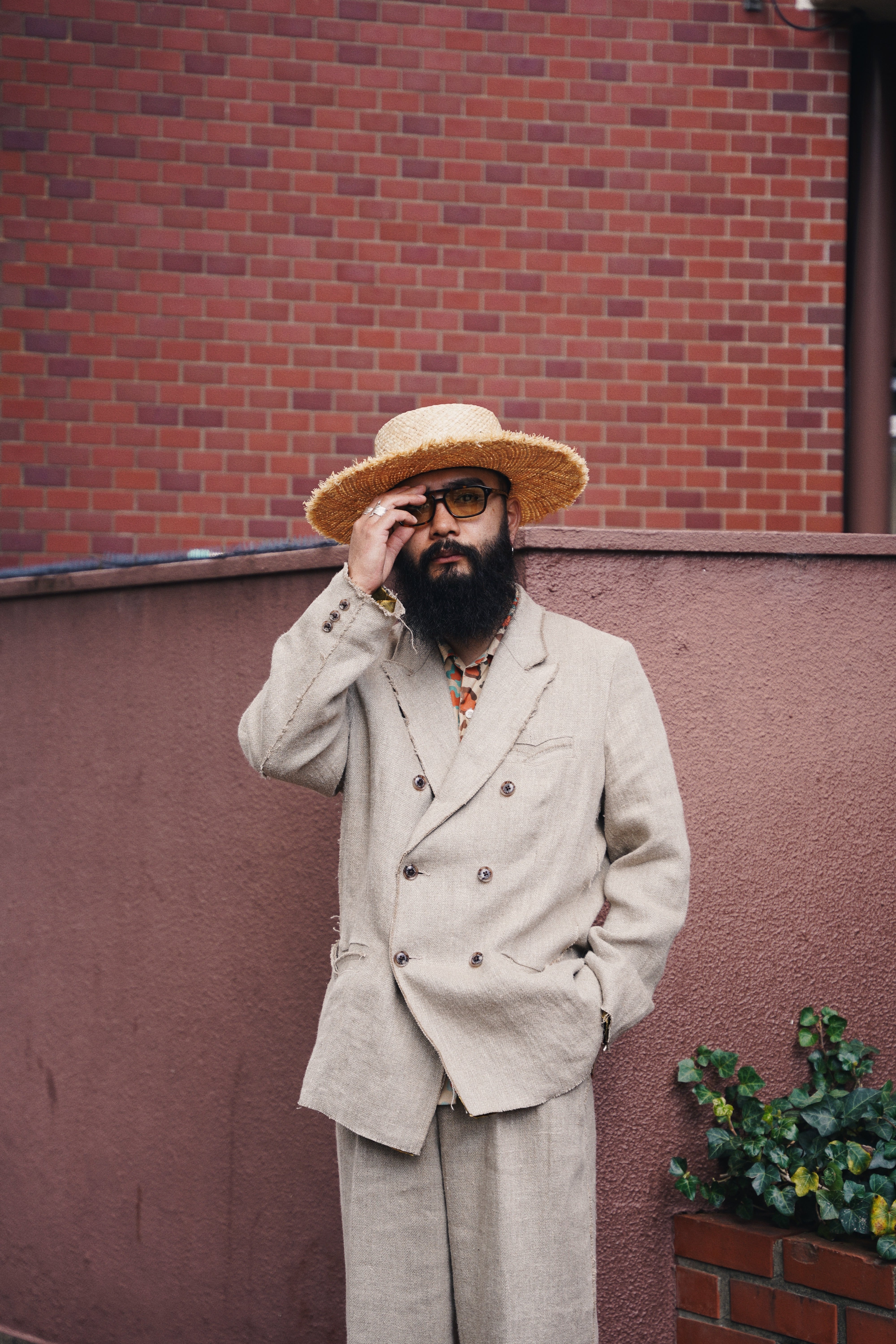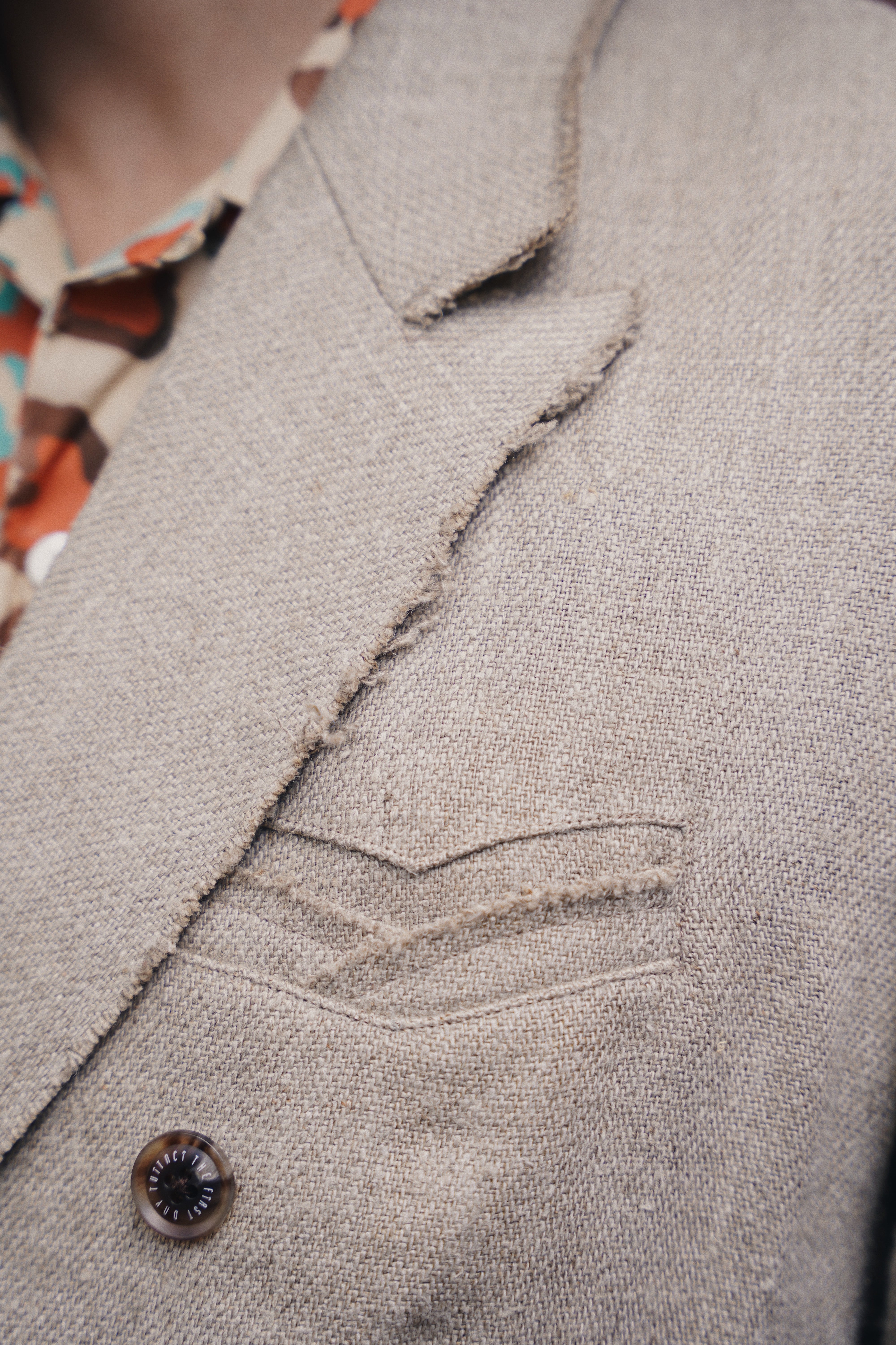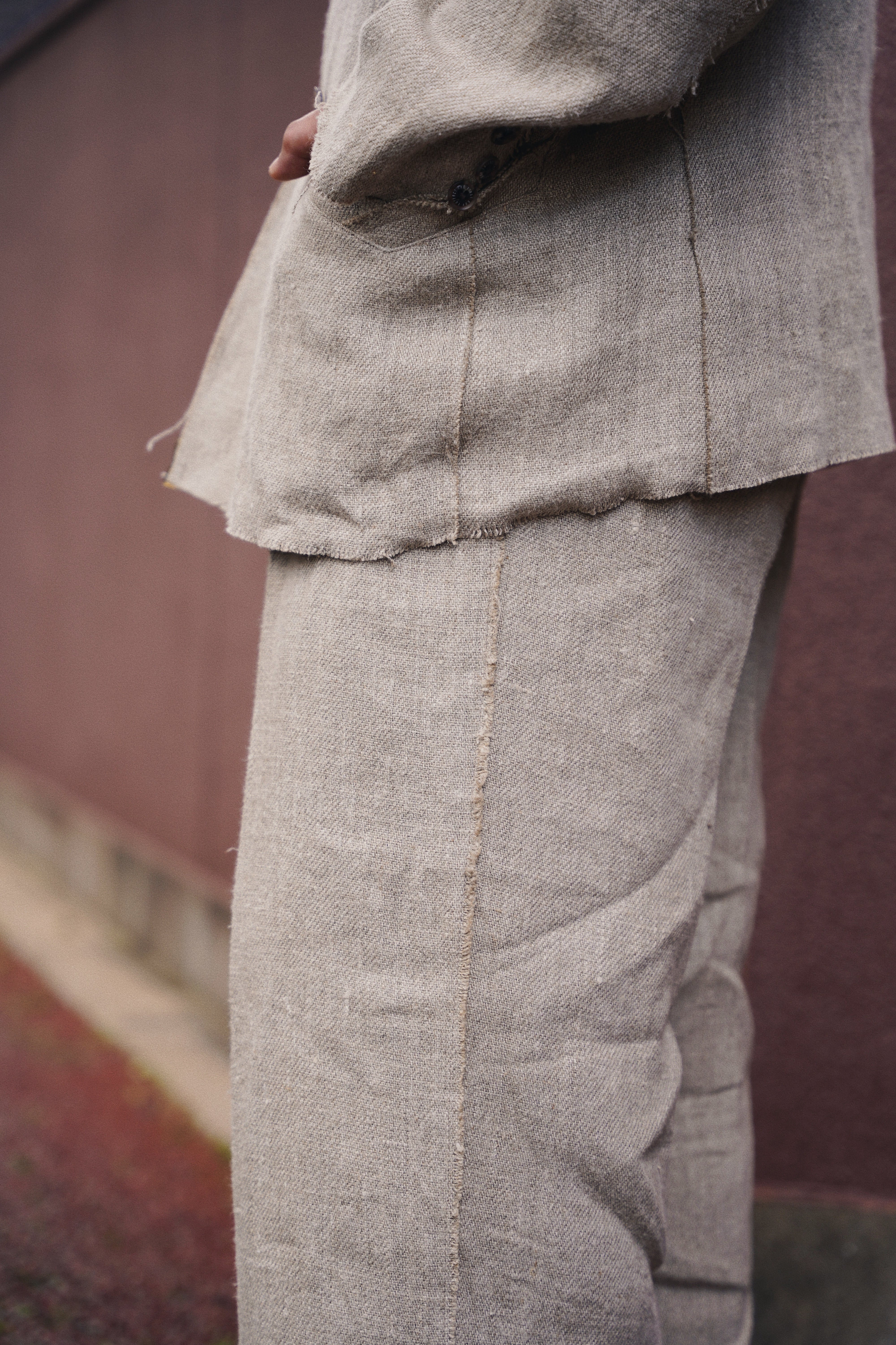 8番手の太いリネン糸を綾織りで超重厚に仕上げたリネン100%のダブルジャケット。リネンの持つ本来の粗野感を残しつつも、セミウェットな質感と柔らかさを表現。ピークドラペルにダブルの仕様でクラシックな印象のリネンジャケットは、随所を断ち切りで仕上げ、裏地にはペイズリーのジャガード裏地を採用。フォーマルな要素を取り入れつつ、カジュアルなディティールとのバランスが抜群。普段使いからフォーマルシーンまで活躍間違いなしのジャケット。