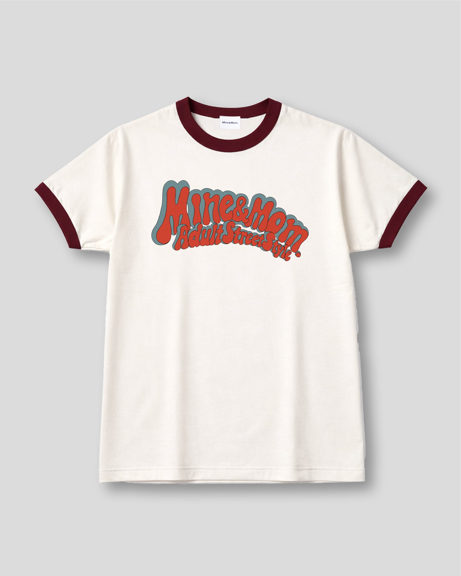Mine&Mom.初のブランドロゴをフロントに大きくプリントしたリンガーTEE。