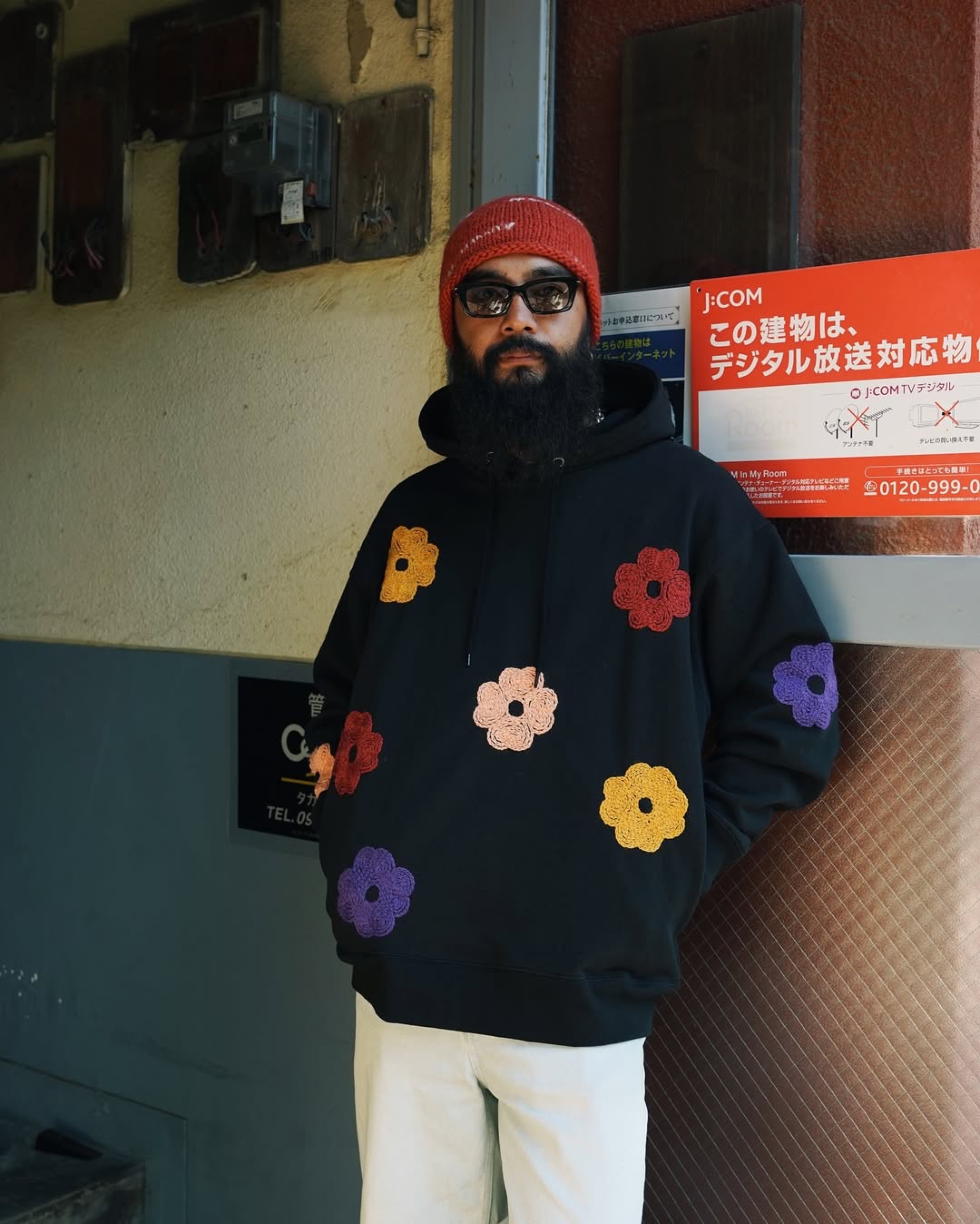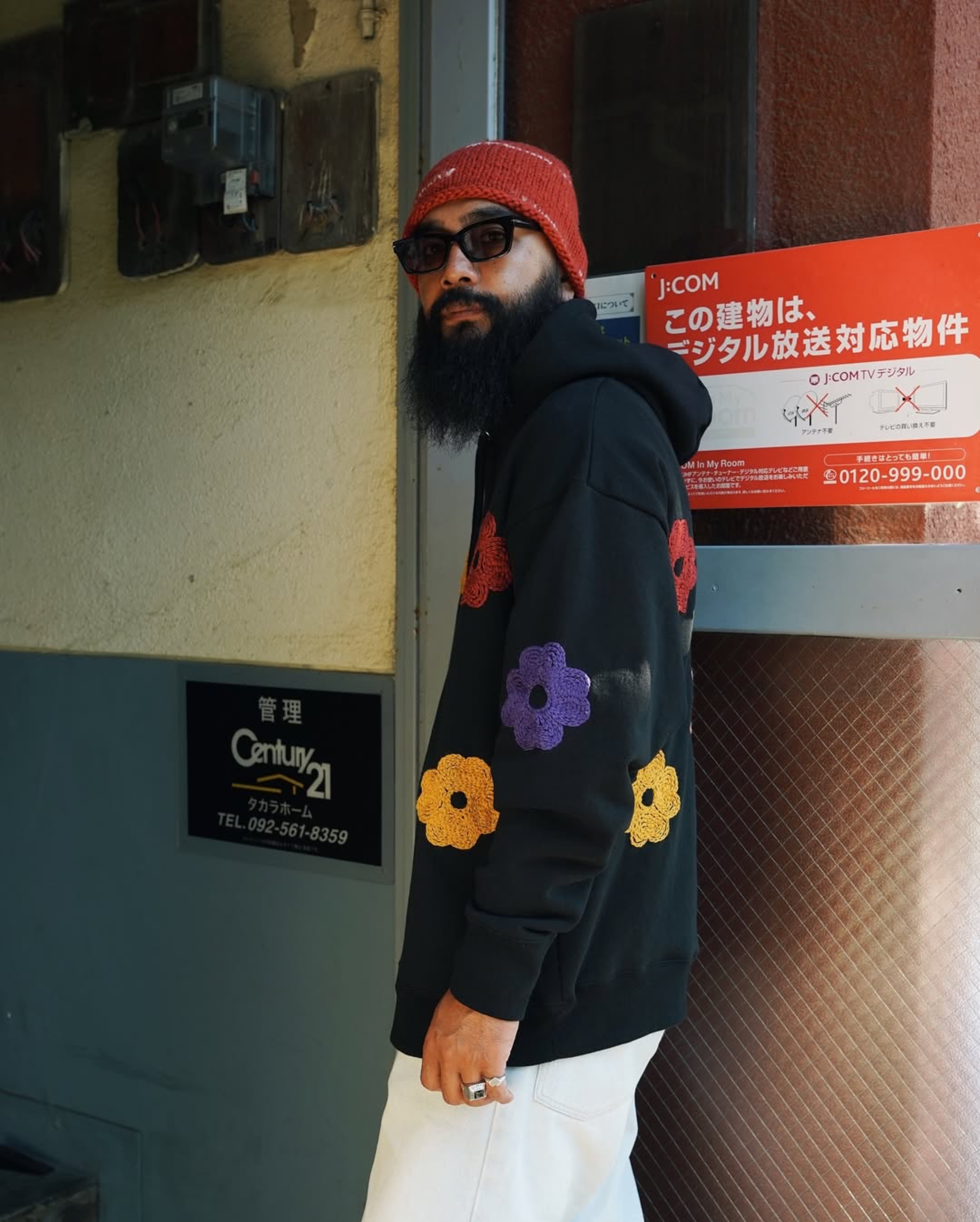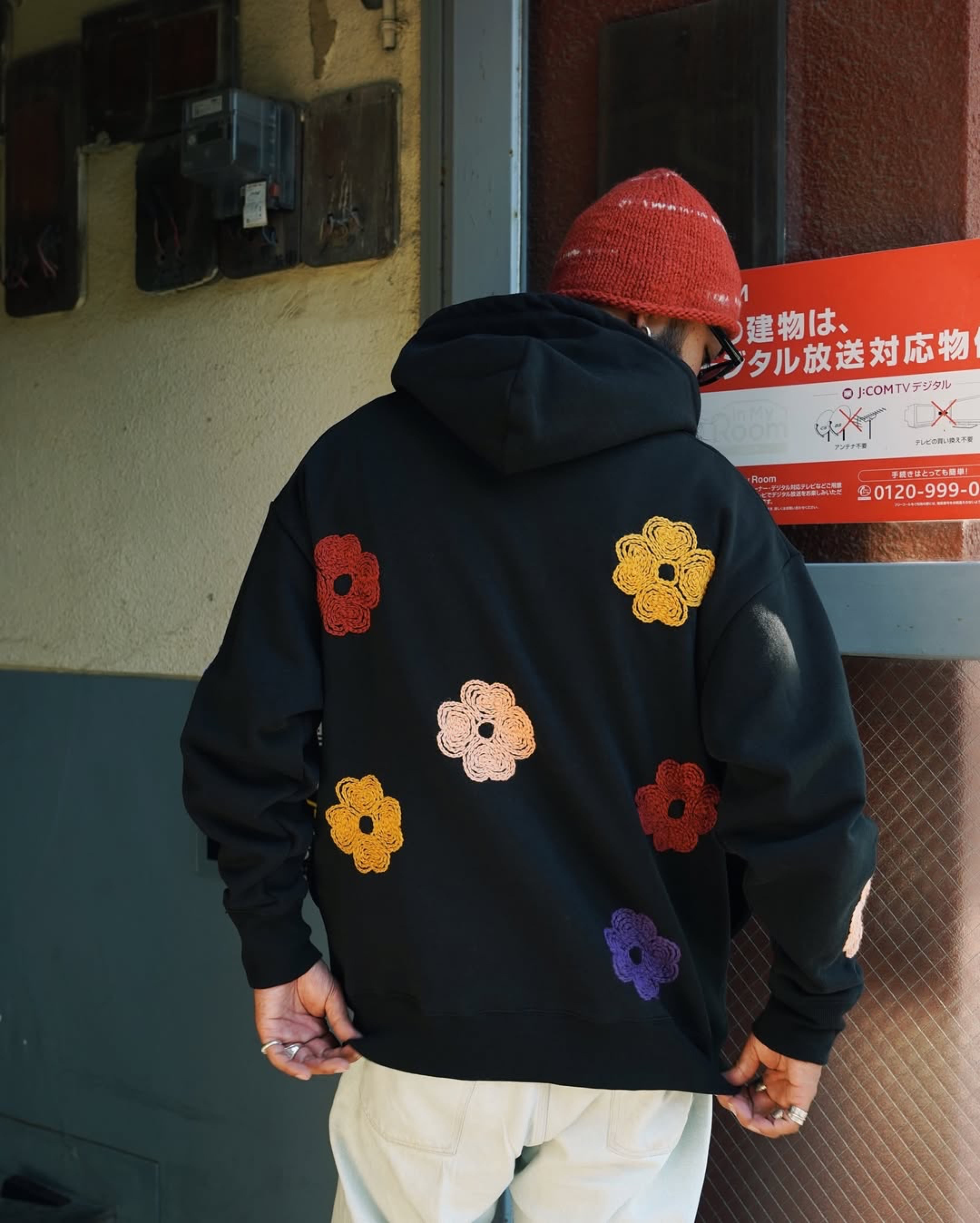 全ての刺繍工程を手作業で行う為、時間もコストも大幅にかかることから大量生産は不可能なこちらのアイテムはインナーとしてもアウターとしても存在感のある他で代えのきかないスペシャルなフーディに仕上がっている。
