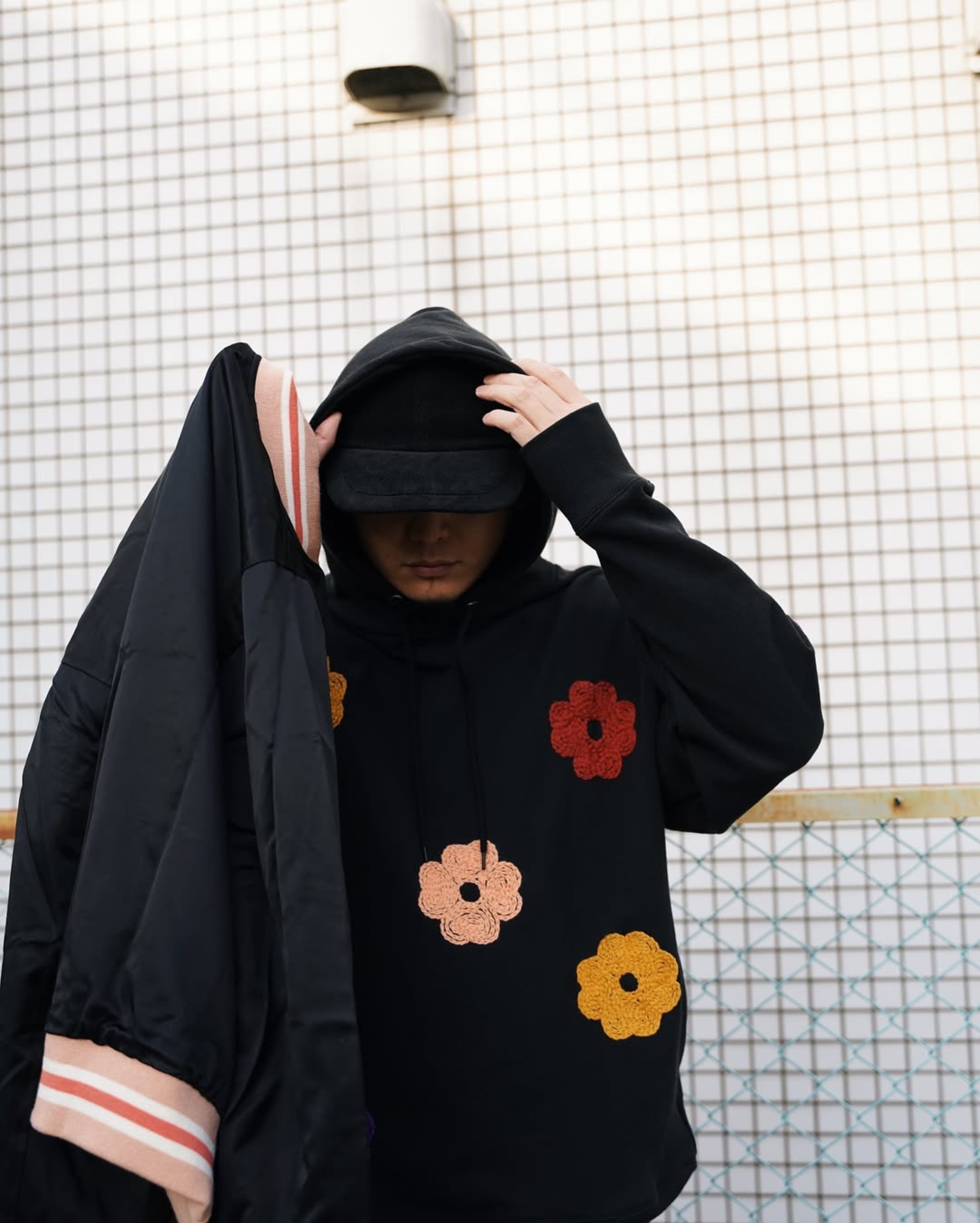 CC"FULL BLOOM" HAND EMBROIDERY HOODIE BLACK