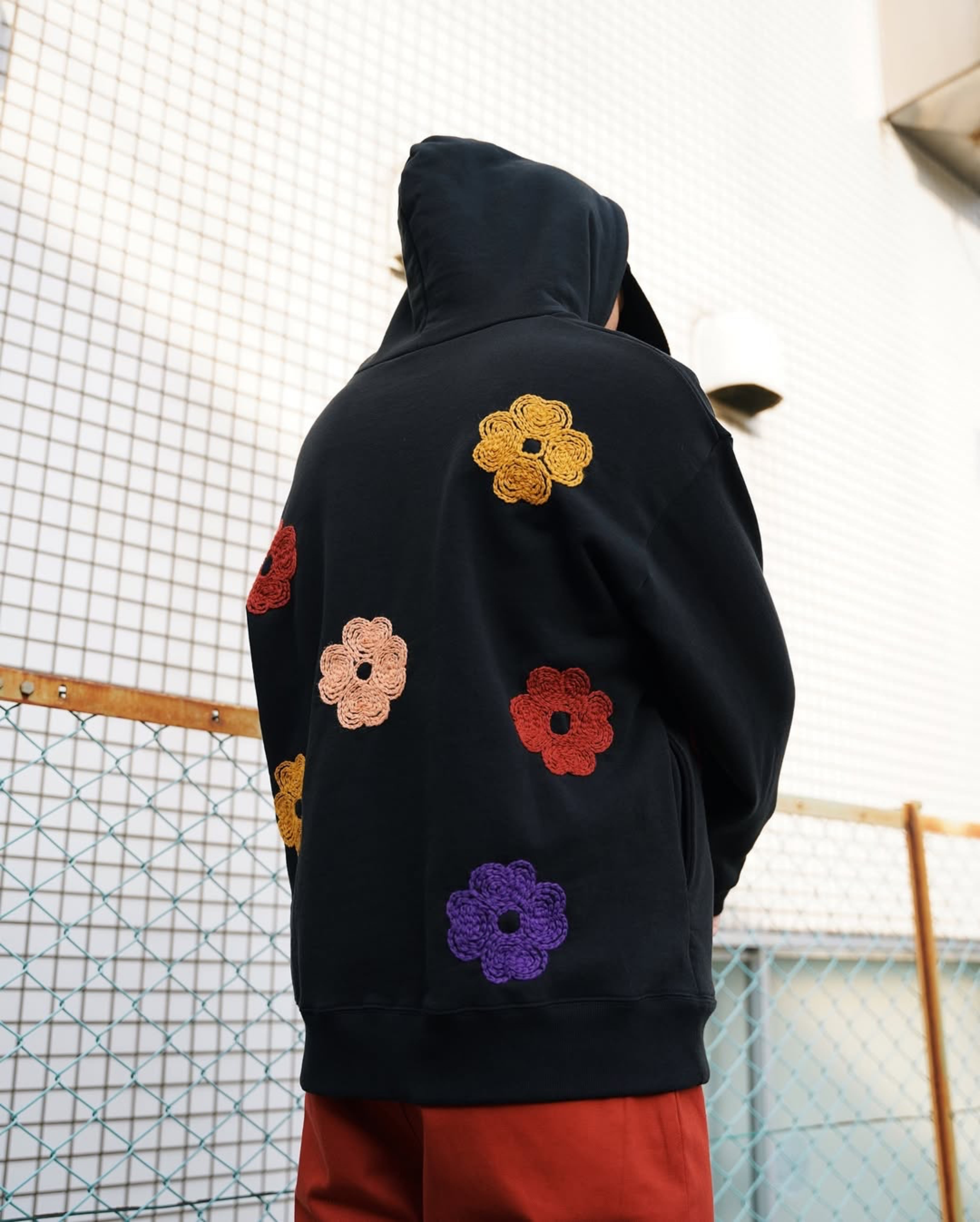 ChahChahハートフラワーを時間をかけ丁寧に一つ一つ職人の手によってチェーン刺繍を全面に施したプルオーバーフーディ。